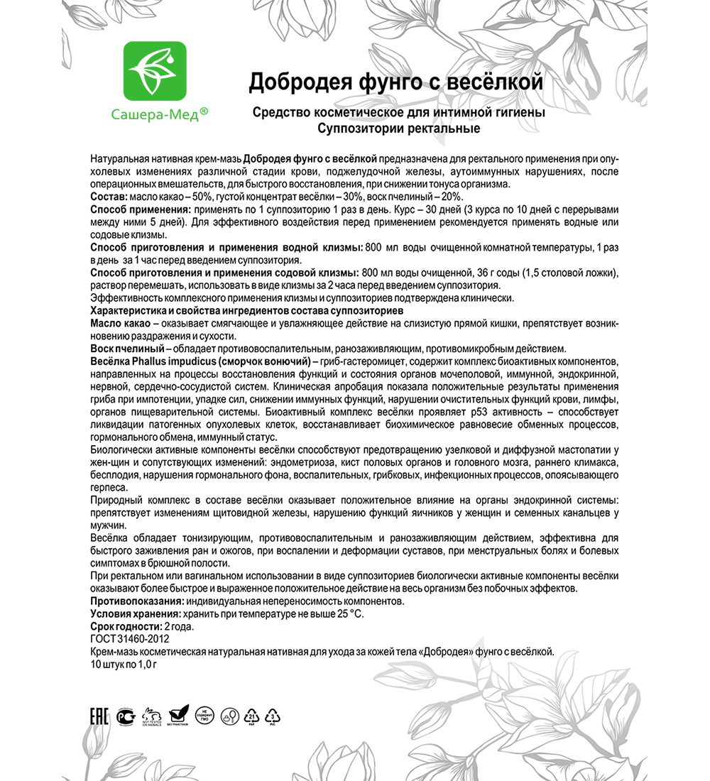 Натуральная нативная крем-мазь Добродея фунго с весёлкой предназначена для ректального применения при опухолевых изменениях различной стадии крови, поджелудочной железы, аутоиммунных нарушениях, после операционных вмешательств, для быстрого восстановления