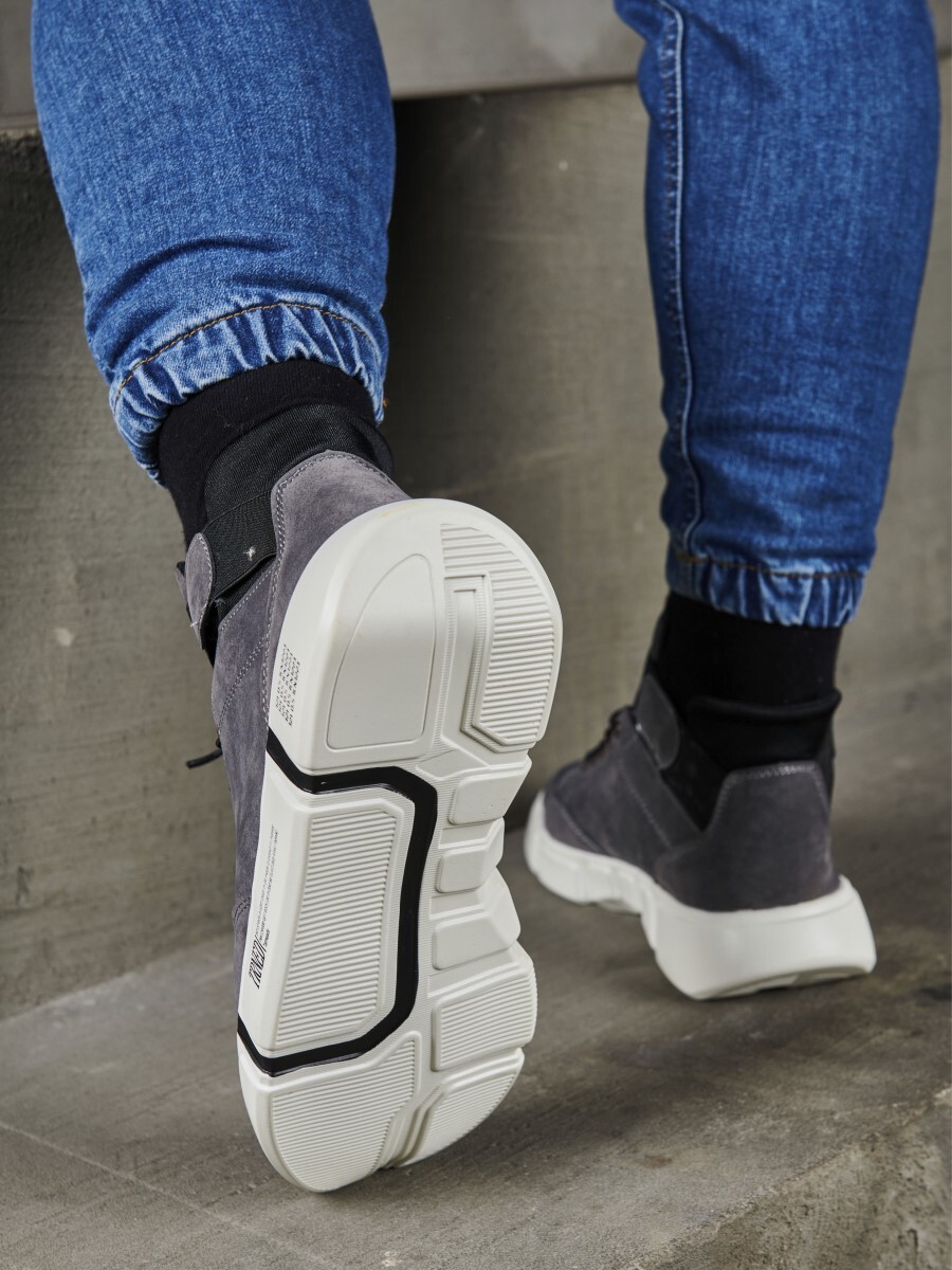 Стильные мужские кроссовки сникеры из искусственной кожи на стельке из ЭВА материала, главные свойства которого: водонипроницаемость, эластичность и гигиеничность. Обувь из ЭВА материалов устойчива к воздействию грибков и бактерий. Подошва из вспененного