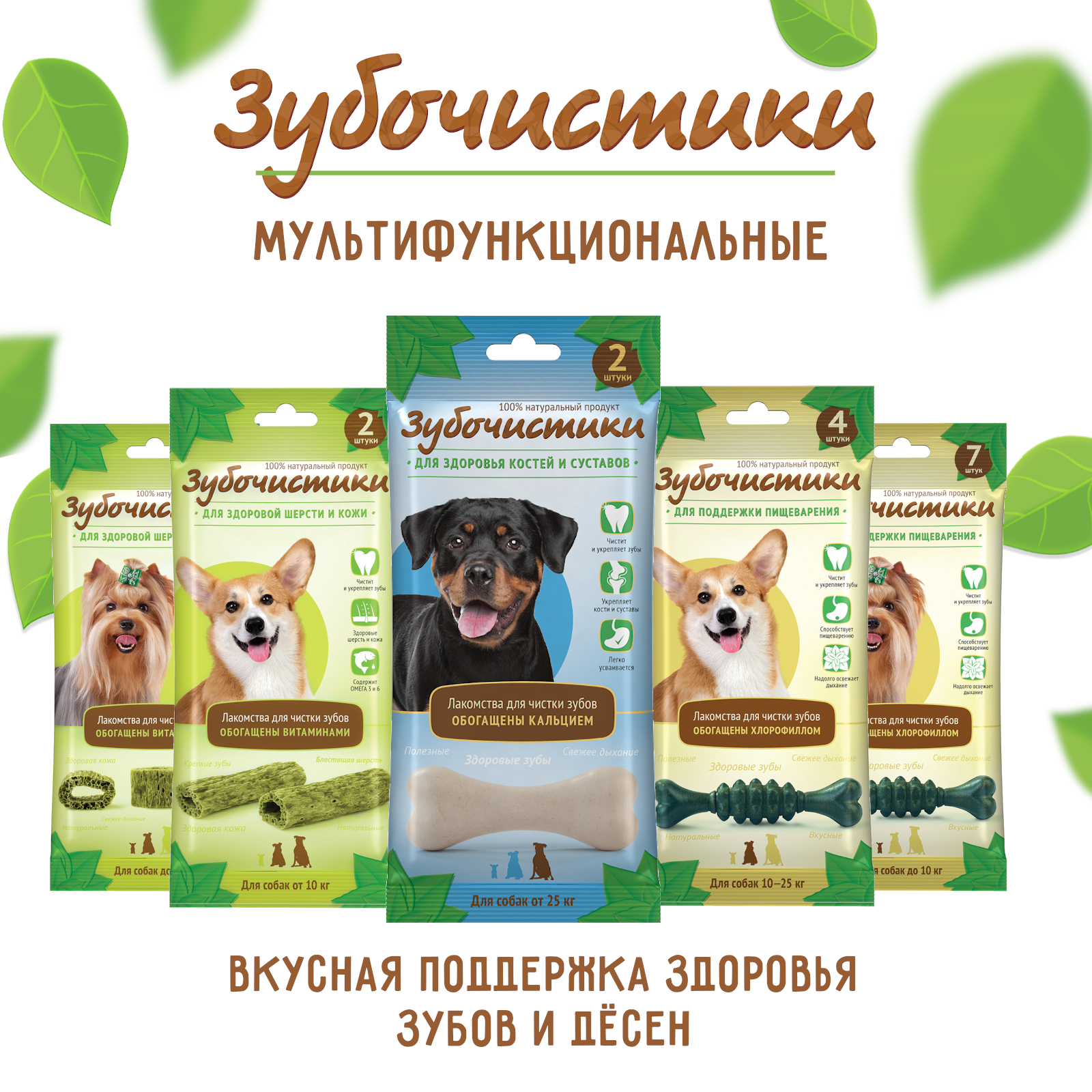 По статистике, 4 из 5 собак в возрасте старше 3 лет страдают от заболеваний зубов и десен. Продукция торговой марки «Зубочистики» разработана для поддержания здоровья зубов собаки на всех этапах ее жизни.Форма и структура лакомств «Зубочистики» способству