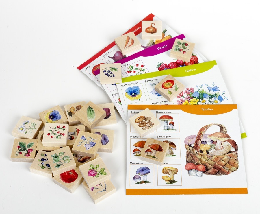 Это тематическое лото познакомит малышей с тем, какие цветы растут на клумбах, какой урожай можно собрать в саду, на огороде и в лесу. Оно рекомендуется для детей от 3-х до 6 лет и рассчитано на 2 или 4 участников.Деревянное развивающее лото «Собирай-ка»,