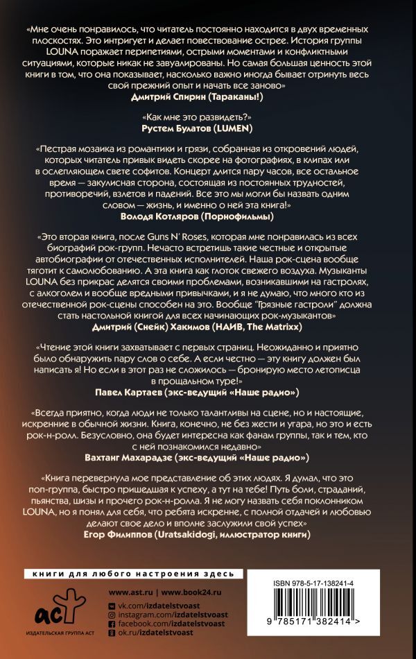 LOUNA — российская рок-группа, дебютное выступление которой состоялось 23 мая 2009 года в московском клубе "Точка", и с этого момента началась их история. Книга была подготовлена к юбилею группы благодаря мощной поддержке поклонников LOUNA и монументально