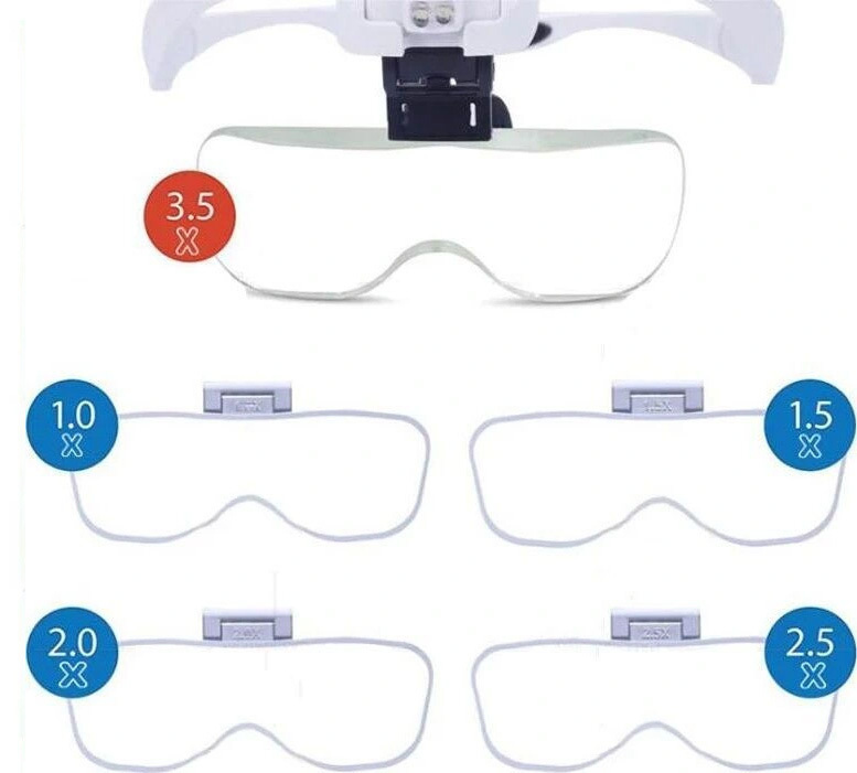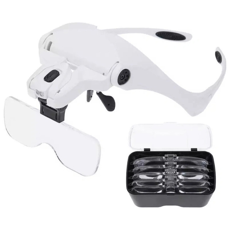 Комплектация:Лупа-очки налобная с LED подсветкой - 1 штукаЛинзы сменны - 5 штукОписание:Налобная лупа-очки – удобный оптический инструмент для шитья, вязания, чтения мелкого шрифта. Можно надевать поверх линз или корригирующих очков.Кратность увеличения: