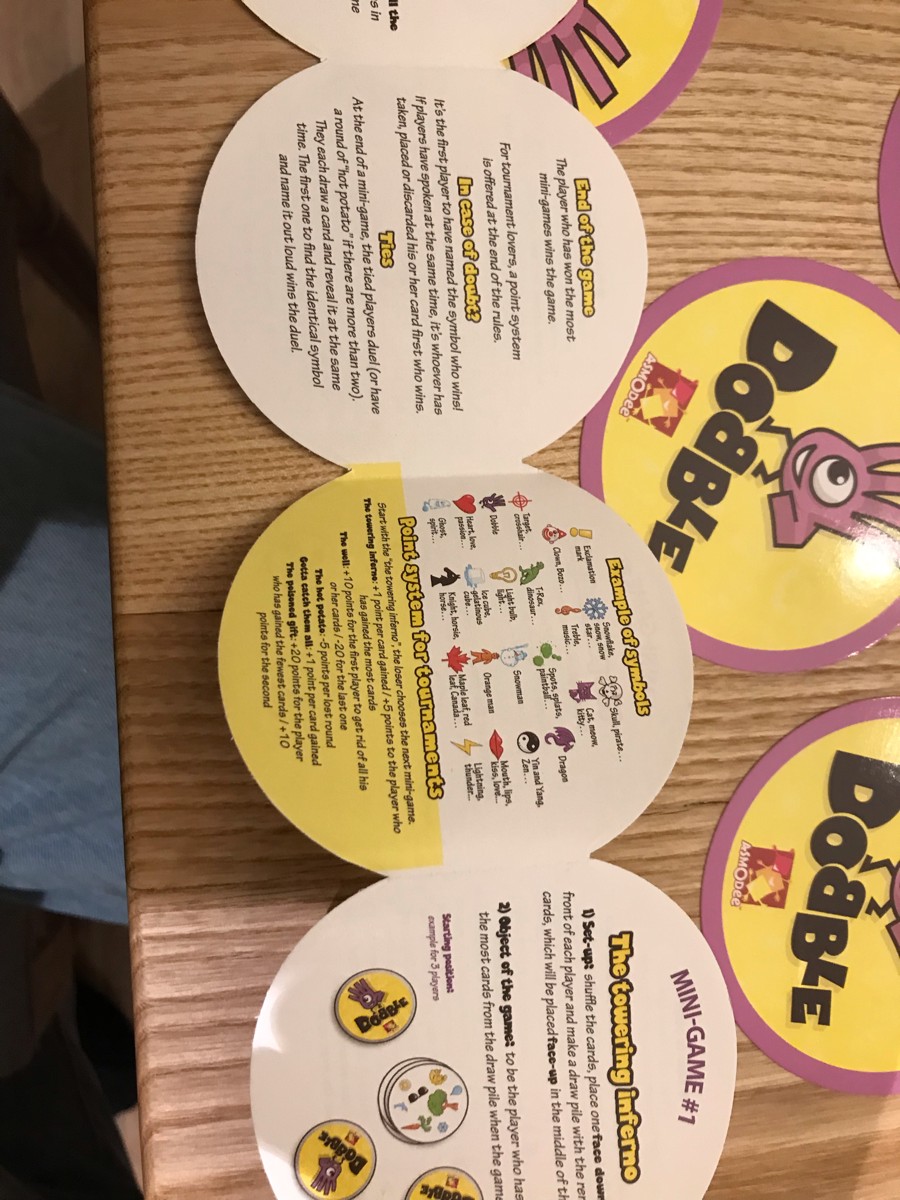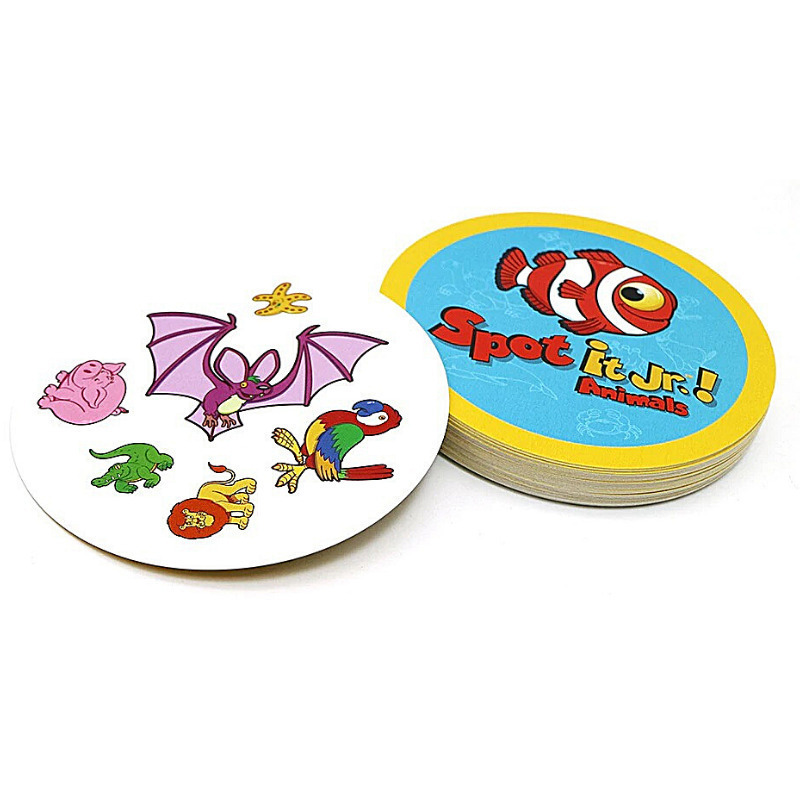 Spot It! - это быстрая весёлая игра, развивающая зрительное восприятие, внимательность и реакцию.Официально рекомендована детям от 6 лет, но доступна и малышам, доставит удовольствие и взрослым :)Компактная круглая коробочка содержит круглые карты с множе