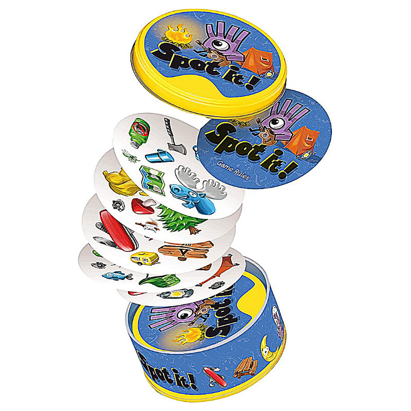 Spot It! - это быстрая весёлая игра, развивающая зрительное восприятие, внимательность и реакцию.Официально рекомендована детям от 6 лет, но доступна и малышам, доставит удовольствие и взрослым :)Компактная круглая коробочка содержит круглые карты с множе