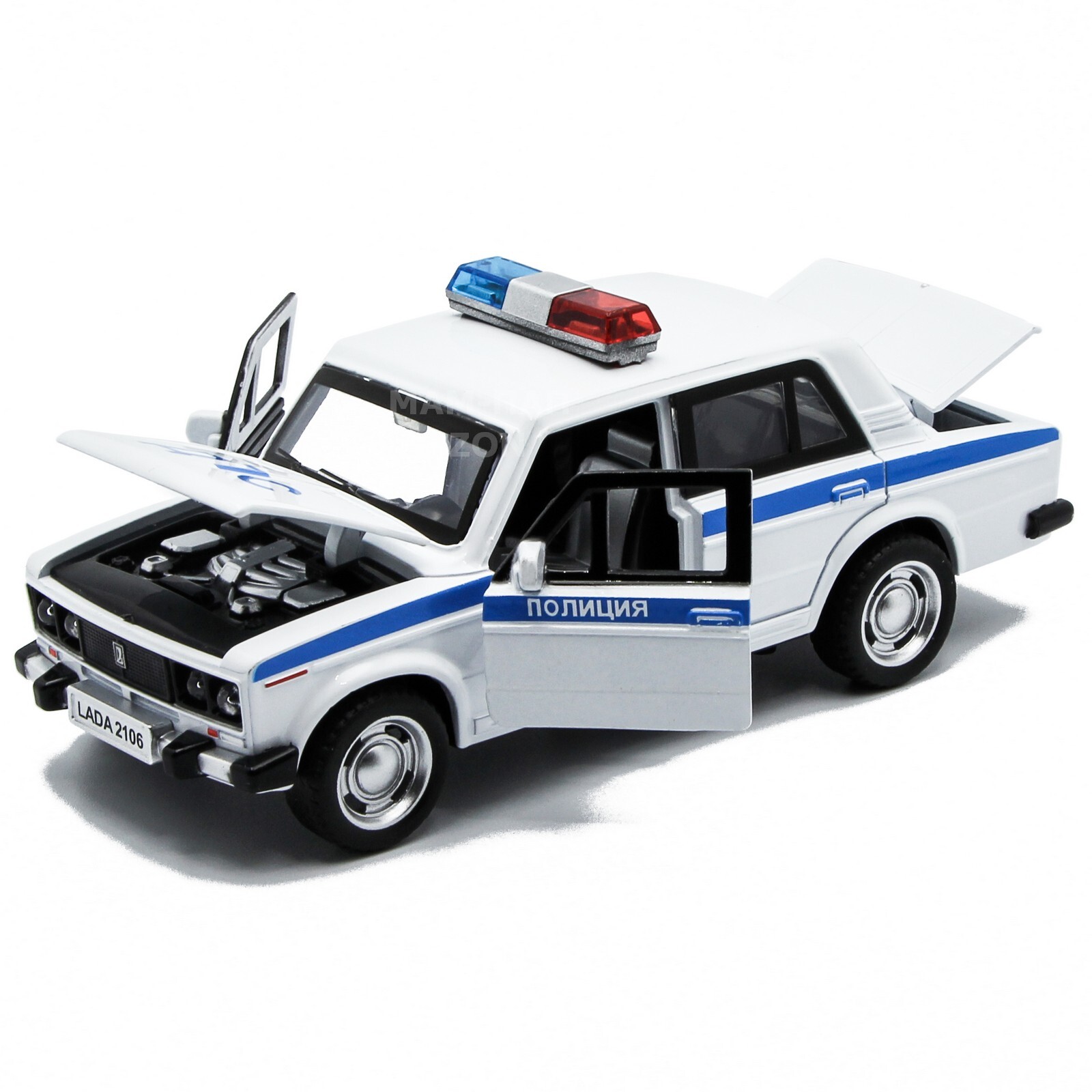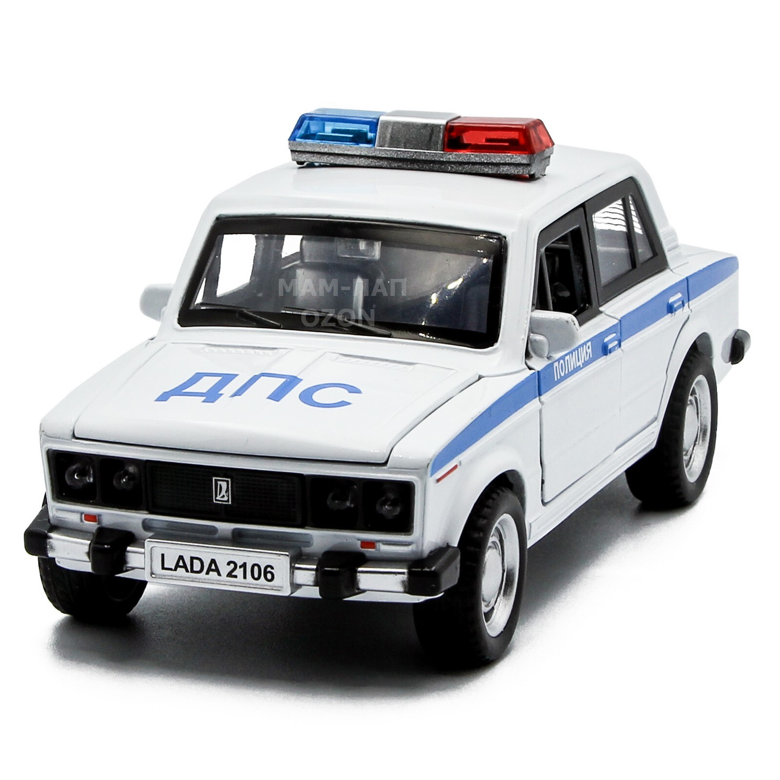 Детская инерционная металлическая машинка представляет собой точную копию модели "Полиция ДПС 2106" (Шестерка), выполненную в масштабе 1:25.Длина машинки 14 см.Благодаря встроенному инерционному механизму, игрушка может самостоятельно передвигаться от неб
