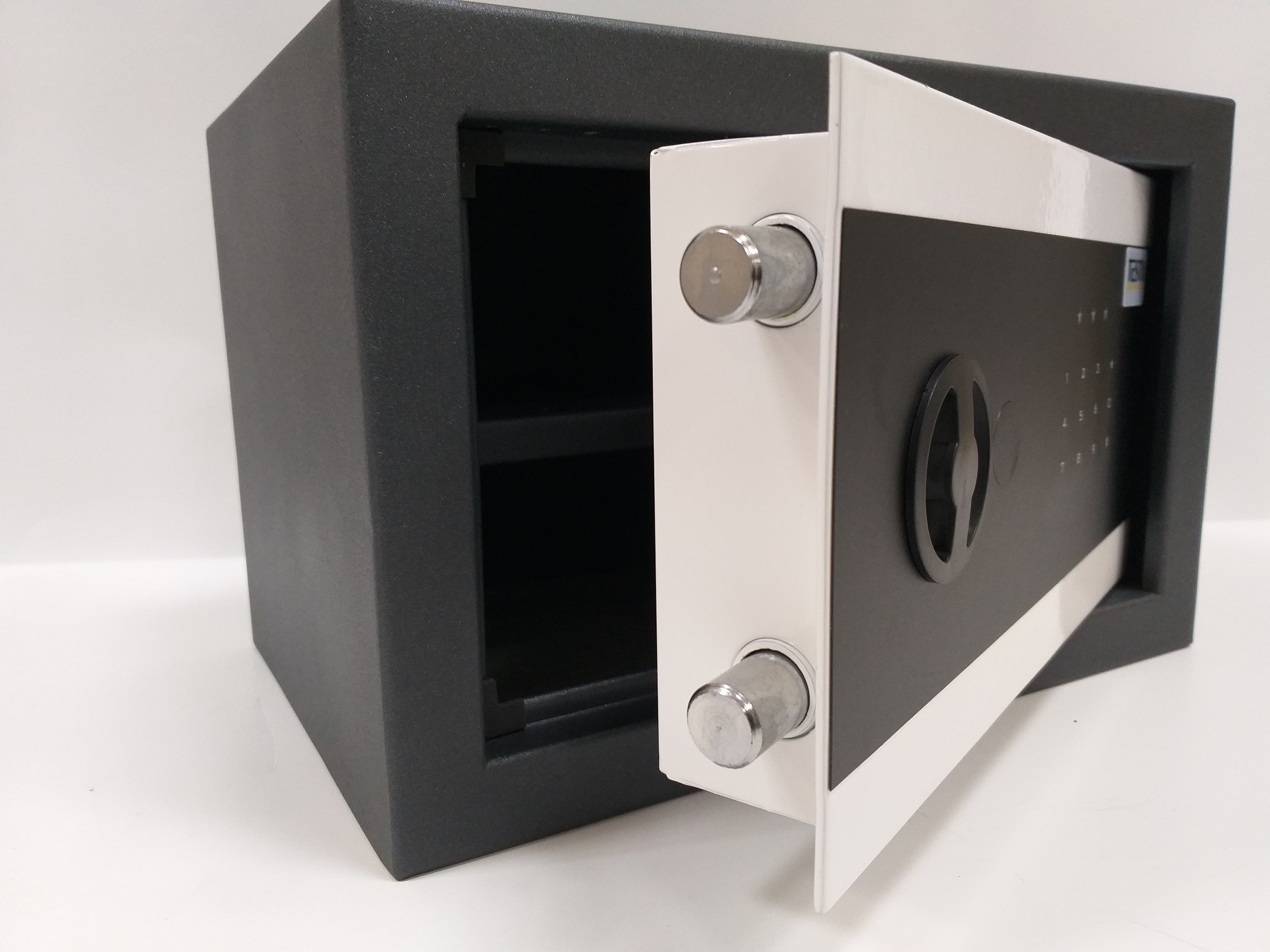 Удовлетворяет требованиям МВД для физических лиц. Сейф имеет гигиенически безопасное,износо- и коррозионно-устойчивое полимерное покрытие.Замок:Электронный замок сейфа предусматривает наличие системы защиты от подбора кода, притрехкратном неправильном наб