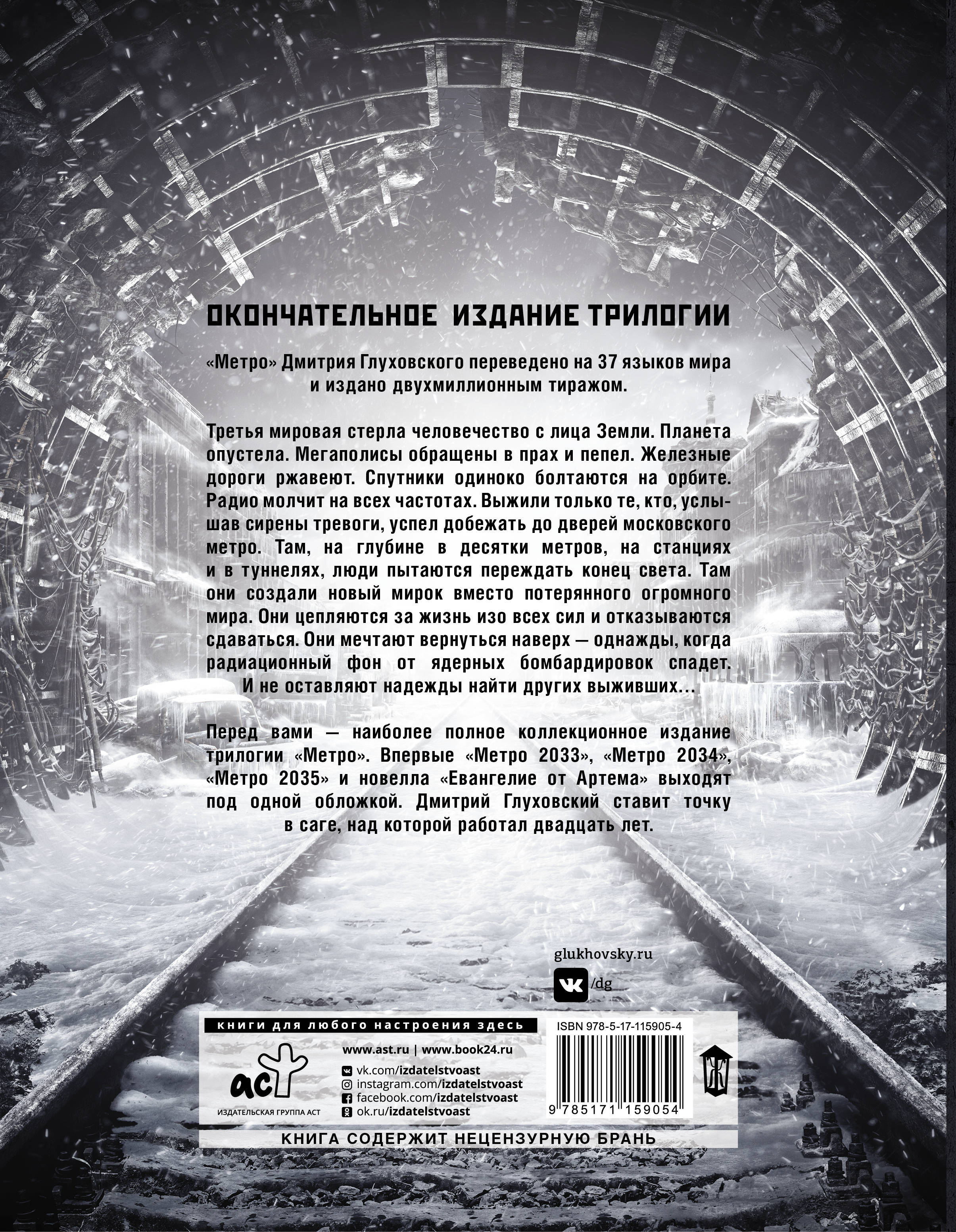 Легендарная постапокалиптическая сага Дмитрия Глуховского, которая переведена на 37 языков. Тираж 2 000 000 копий и миллионы фанатов по всему миру, которые заворожены мистическим путешествием по тоннелям московского метро – единственного места, где челове