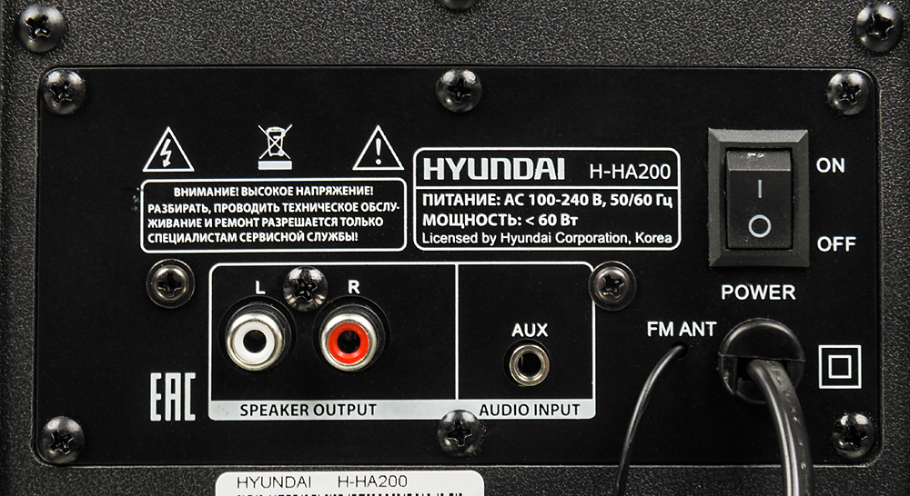 Hyundai H-HA200 - это мультимедийная акустическая стереосистема 2.1. Идеальна для использования с персональными компьютерами, ноутбуками, CD, MP3, TV и другими совместимыми аудио устройствами. Максимальный набор значимых функций: FM-тюнер, USB-вход, SD-к