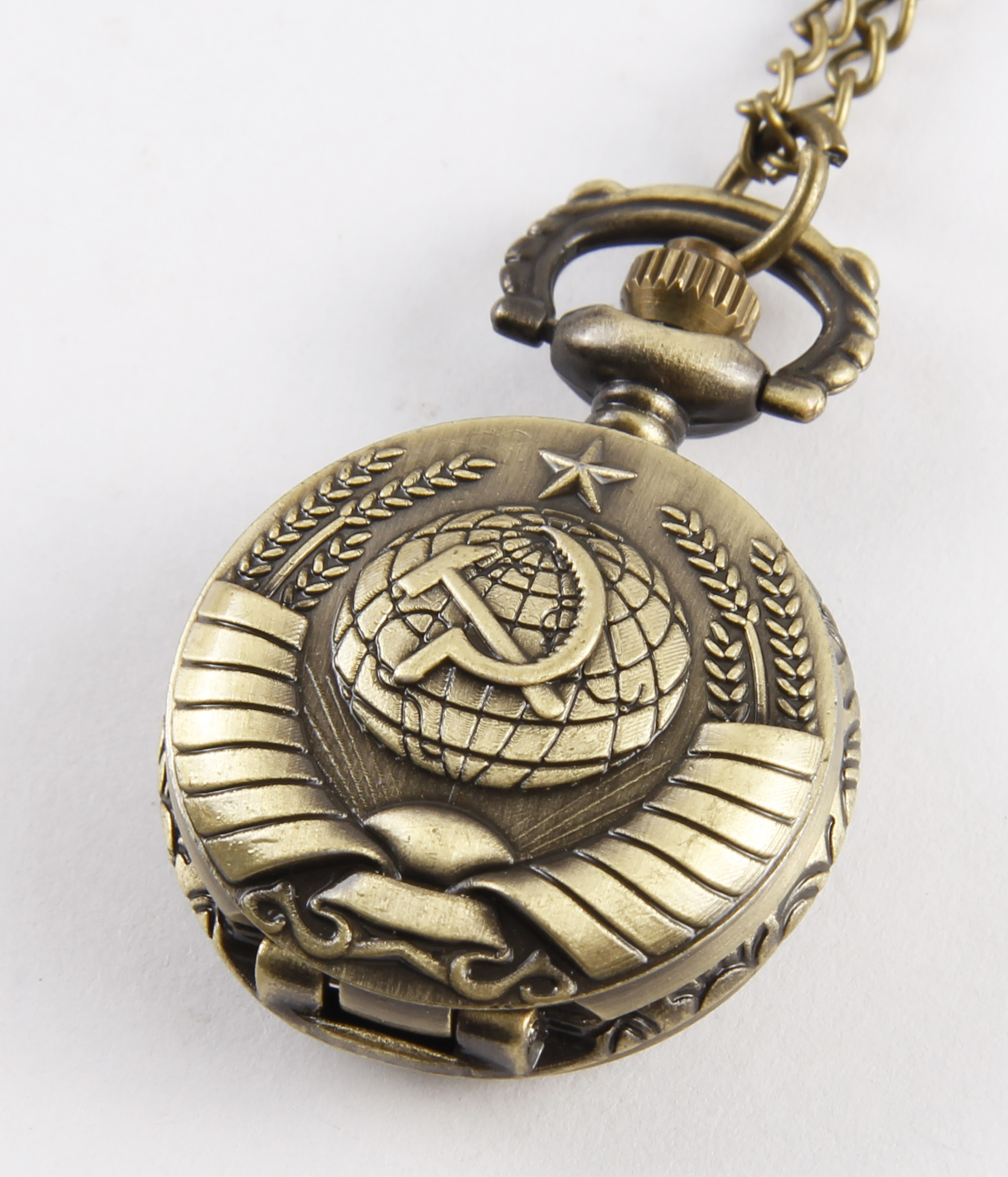 Миниатюрные карманные часы "СССР" на цепочке.Металл, кварцевый часовой механизм.Длина цепочки 80 см.Диаметр 2,5 см.Вес: 54 гр.Рекомендации по уходу: носить с удовольствием.