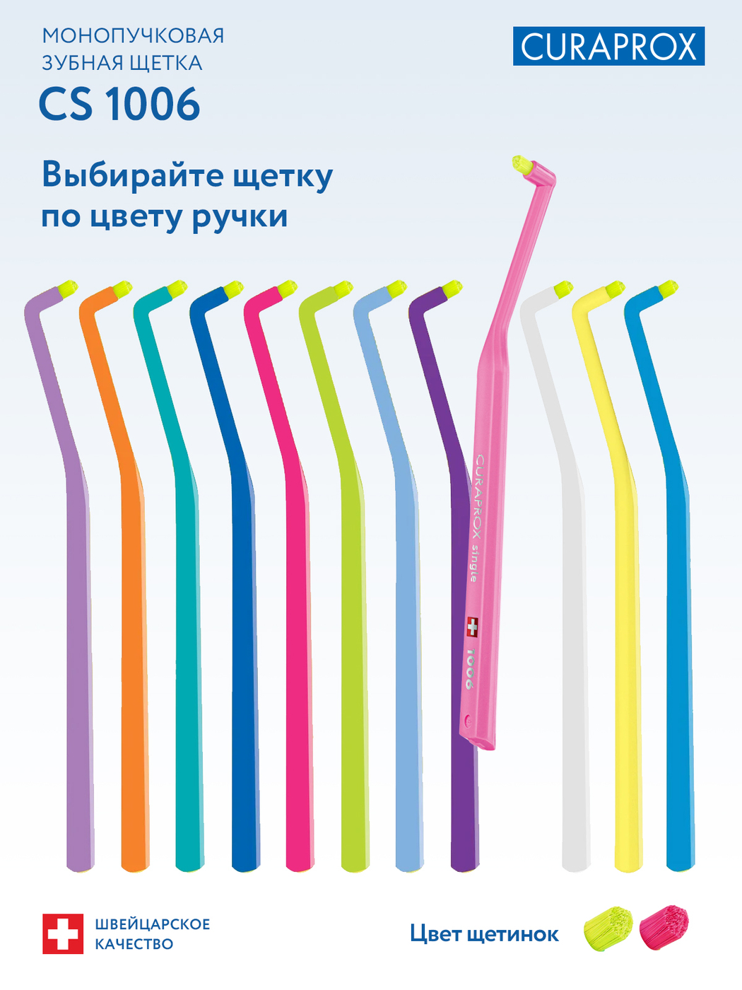 Монопучковая щетка CURAPROX CS Single для очистки труднодоступных поверхностей зубов и зубодесневой борозды. Длина пучка 6 мм. Подходит для очистки отдельно стоящих зубов, ретромолярной зоны. Благодаря закругленной щетине, щетка легко адаптируется к анато
