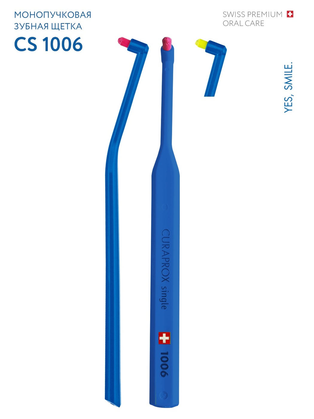 Монопучковая щетка CURAPROX CS Single для очистки труднодоступных поверхностей зубов и зубодесневой борозды. Длина пучка 6 мм. Подходит для очистки отдельно стоящих зубов, ретромолярной зоны. Благодаря закругленной щетине, щетка легко адаптируется к анато