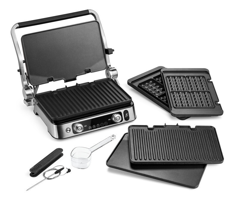Delonghi Мультигриль CGH1130DP это функциональность и мощность в одном устройстве. Максимальная температура 265С. Он подойдет для всей семьи или большой компании.Мультигриль оснащен термощупом, который даст вам уникальную возможность достичь желаемой степ