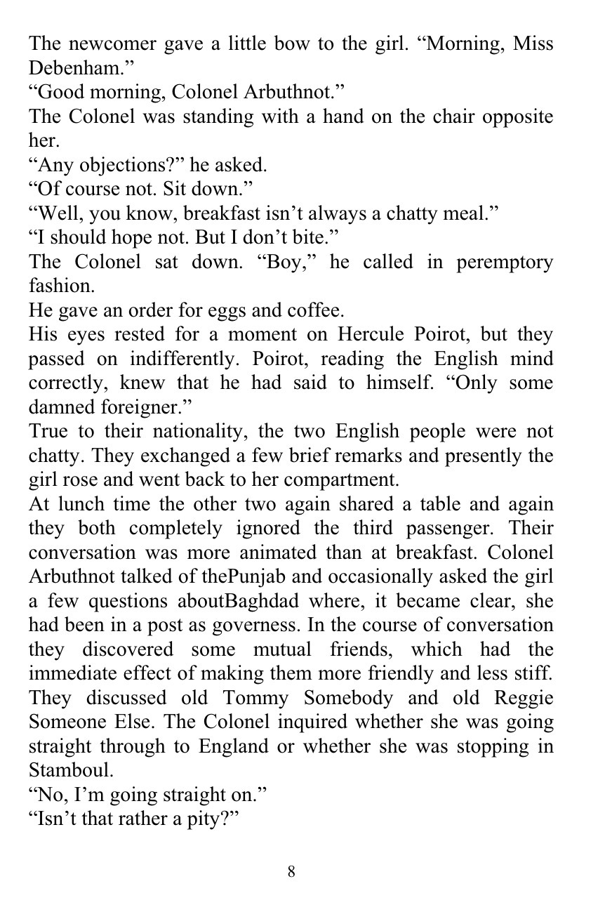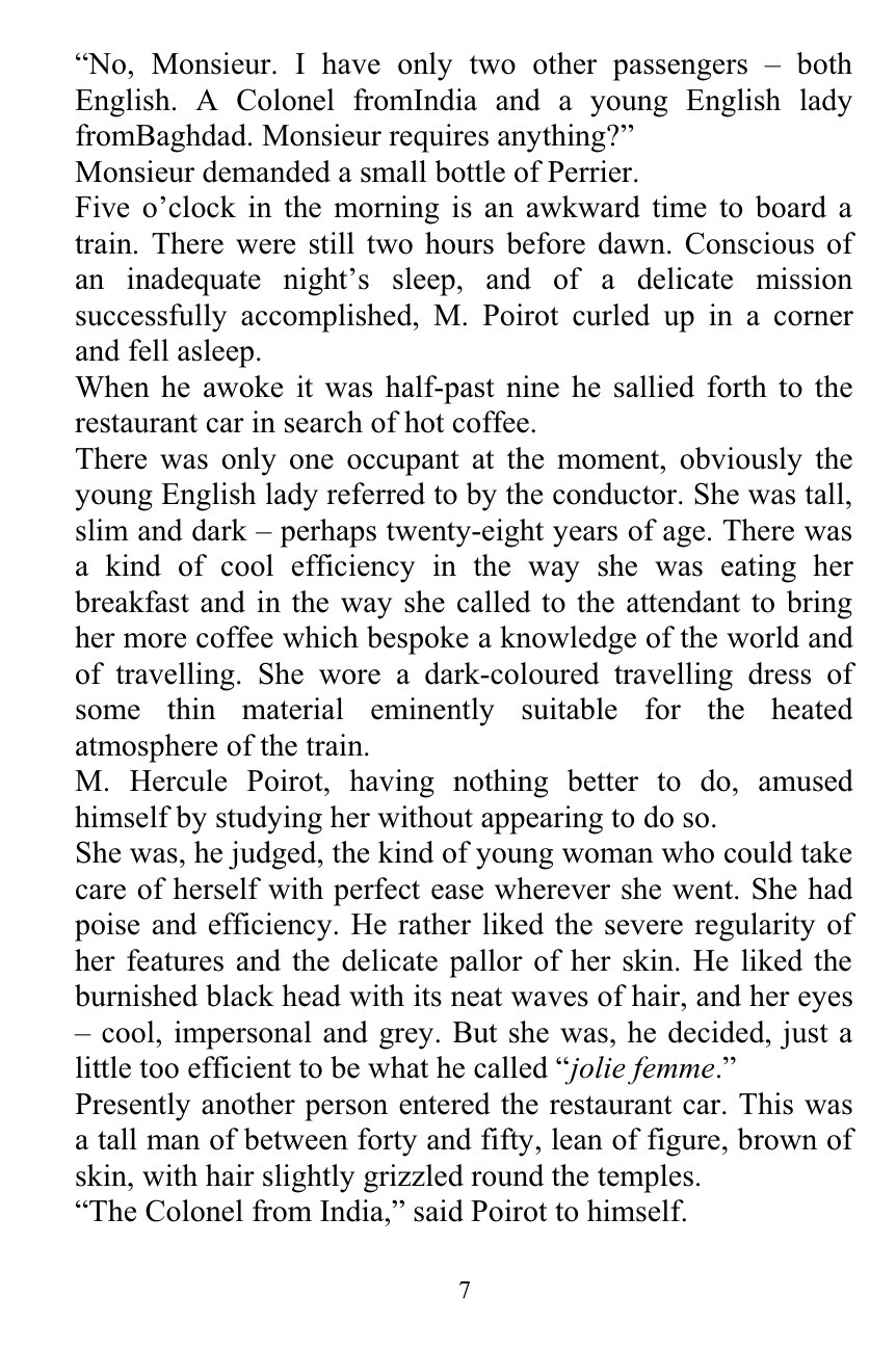 Murder on the Orient Express is a detective novel by English writer Agatha Christie featuring the Belgian detective Hercule Poirot. It was first published in the United Kingdom by the Collins Crime Club on 1 January 1934. In the United States, it was publ