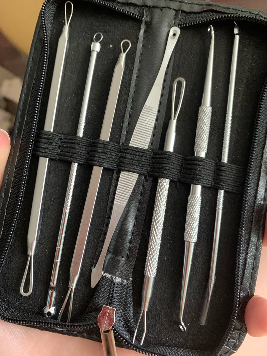 Косметологический набор для удаления акне тщательно разработан, изготовлен из нержавеющей стали. Подходит для профессионального салонного использования или домашнего использования. В состав набора входят следующие инструменты: угревыдавливатель, ложка уно