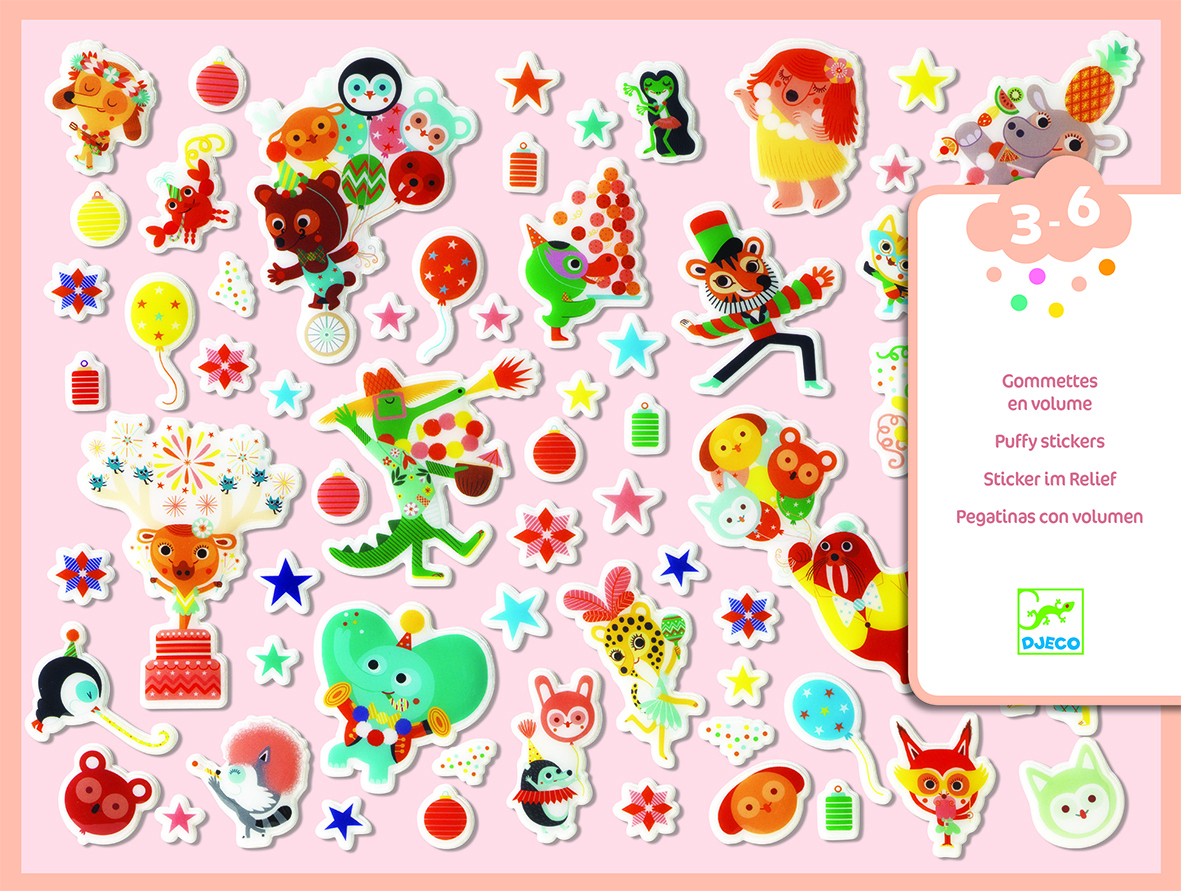 Очаровательные объемные наклейки "Вечеринка" украсят любую тетрадку, учебник, альбом или пригласительную открытку! Ребенок сможет развить мелкую моторику, координацию движений и воображение. Подходят для детей от 3 лет. В наборе два листа с яркими изображ