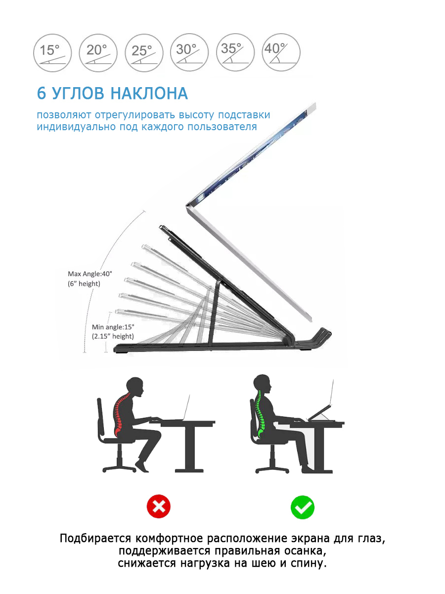 Подставка для ноутбука ОБЕD это комфорт и элегантность в одном флаконе. Алюминиевая конструкция, силиконовые накладки позволяют не только устанавливать с подставкой на любую плоскую поверхность, но и защищают от царапин и скольжения. Складная, лёгкая и ко