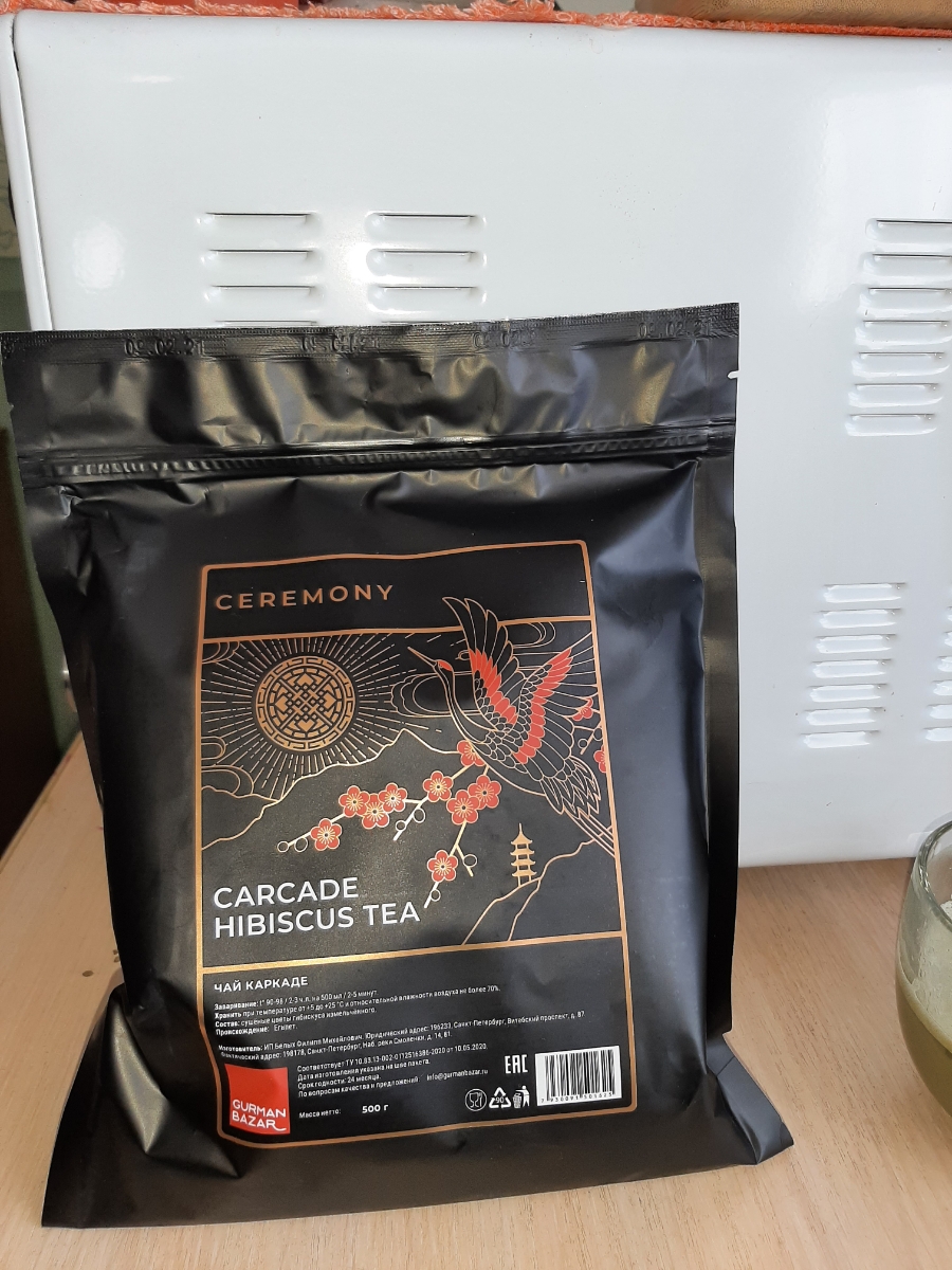 Условия хранения:Хранить при температуре от 5 до 25 градусов С. и относительной влажности воздуха не более 70%.Состав:чай красный каркаде измельченный 2-9 мм (цветок суданской розы, гибискус измельченный, каркадэ)