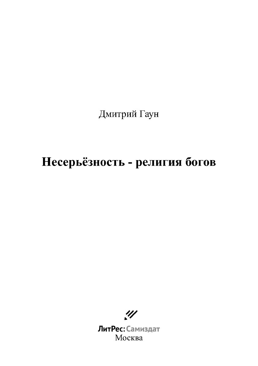 Сознание человека является основной темой книги "Несерьёзность - религия богов". Это художественное издание может послужить в качестве методического пособия для улучшения качества жизни.В оформлении обложки использован коллаж на основе: картины Антонио Пе