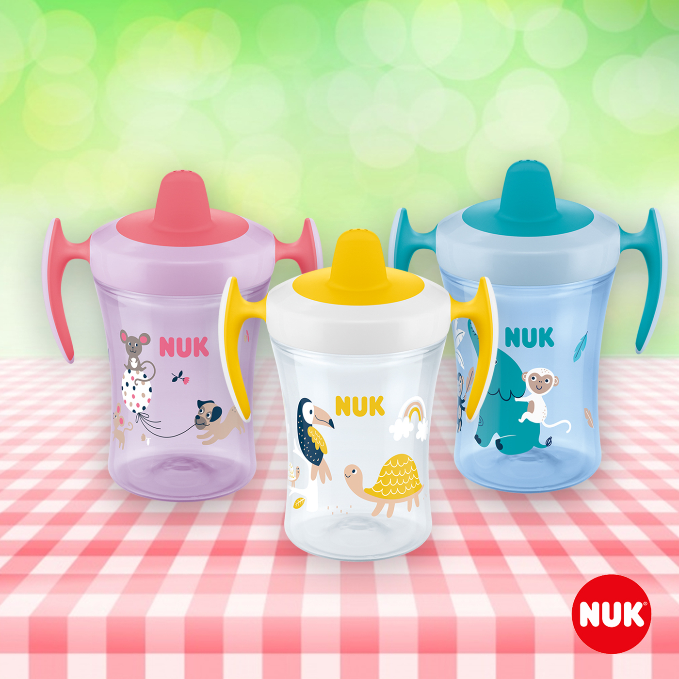 Современное поколение поильников из новой линейки поильников NUK, «растущих» вместе с ребенком, позволяют малышу перейти к самостоятельному питью, абсолютно не пачкаясь при этом.Новый обучающий поильник "TRAINER" – первый из 3х поильников линейки