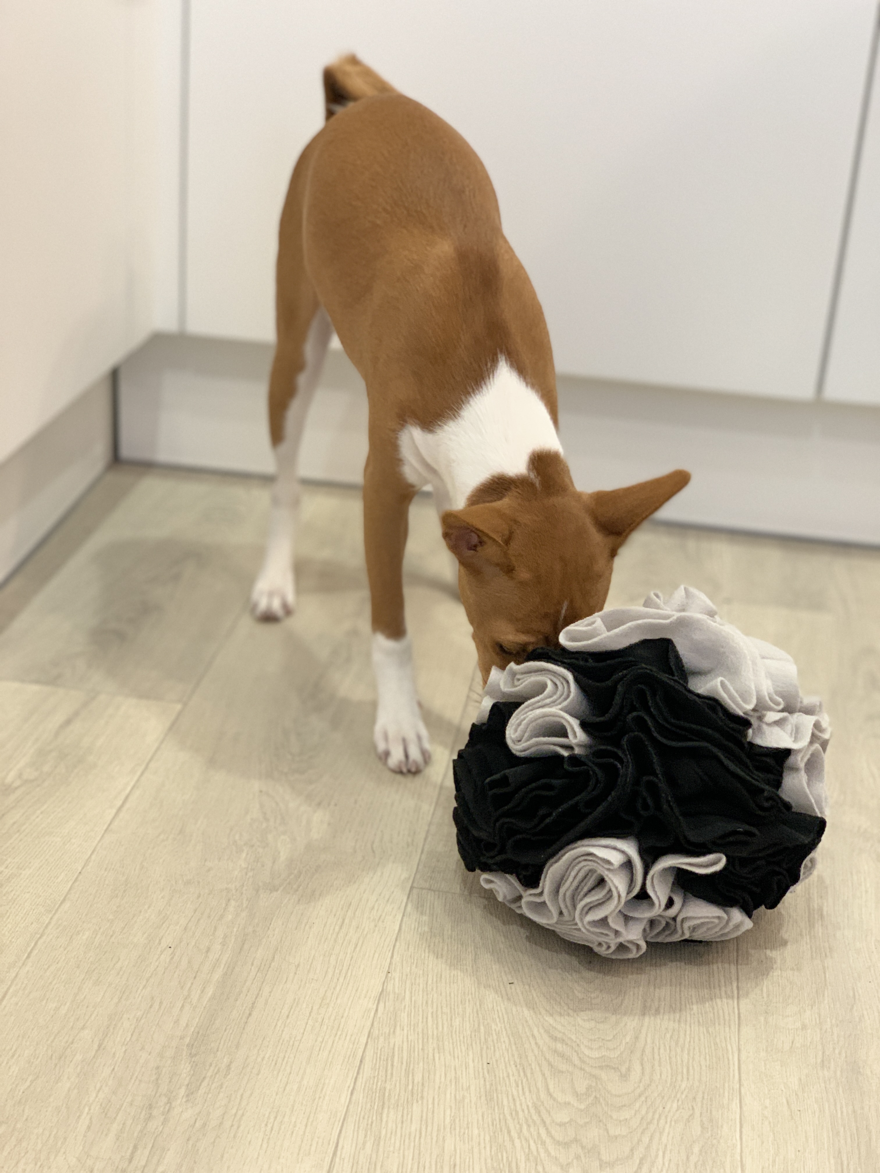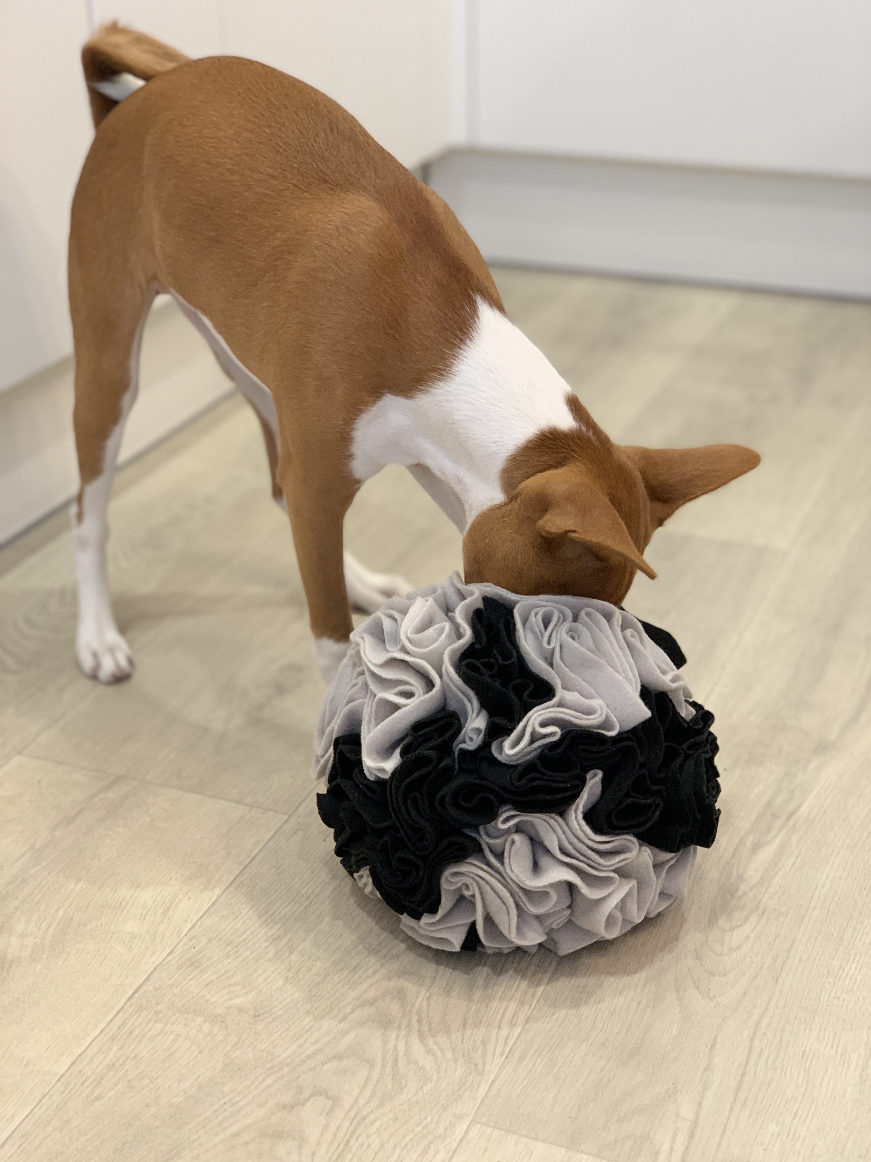 Нюхательный мяч для собак - это игрушка, которая развивает логическое мышление и нюх питомца. Используя лапы и нос, а также применив смекалку, питомец должен найти кусочки лакомства или сухого корма, спрятанные в складки шарика.Поисковые игры - это интелл