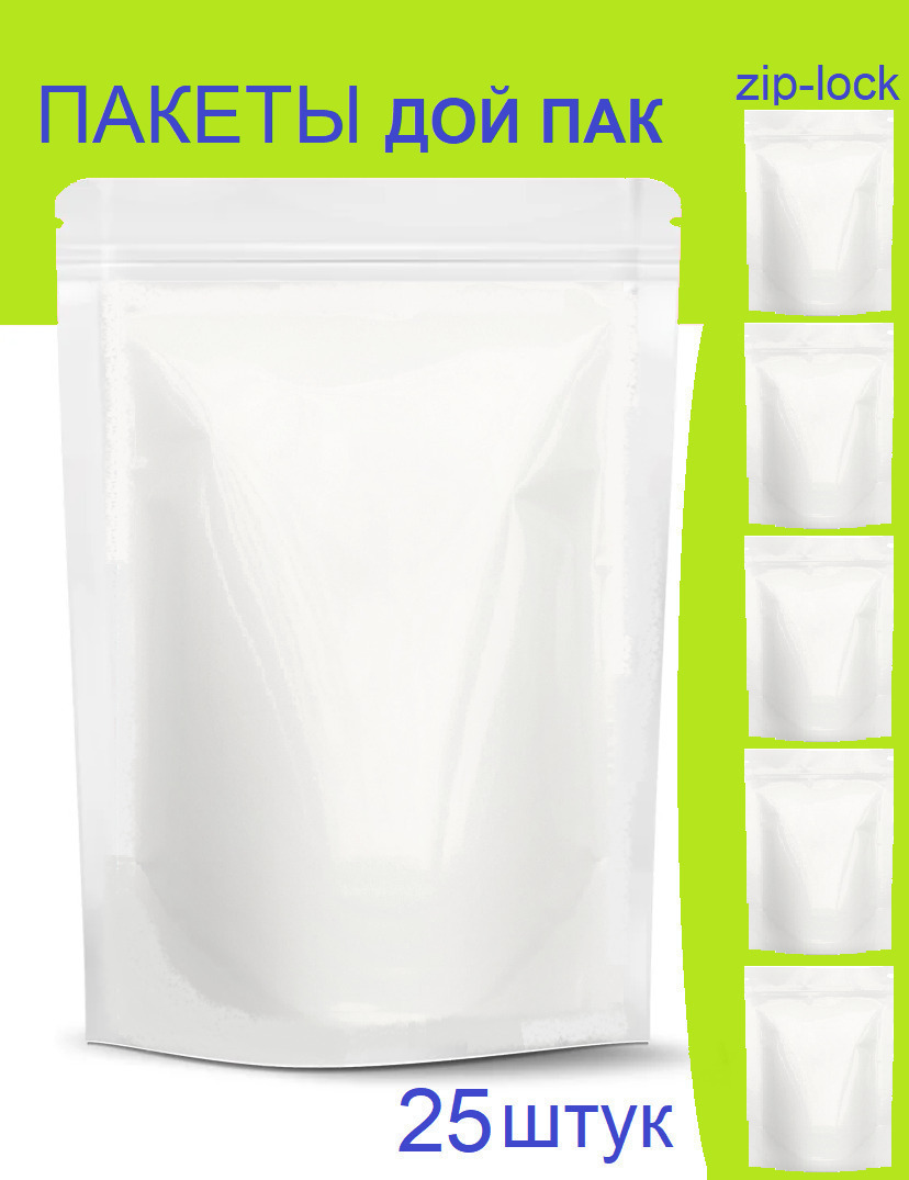 Белый дой-пакет для сыпучих бакалейных товаров с прозрачным овальным окошком для демонстрации продукта и функциональным zip-lock замком. Упаковка хорошо подходит для фасовки на вес чайно-кофейной и другой продукции с самобытным…