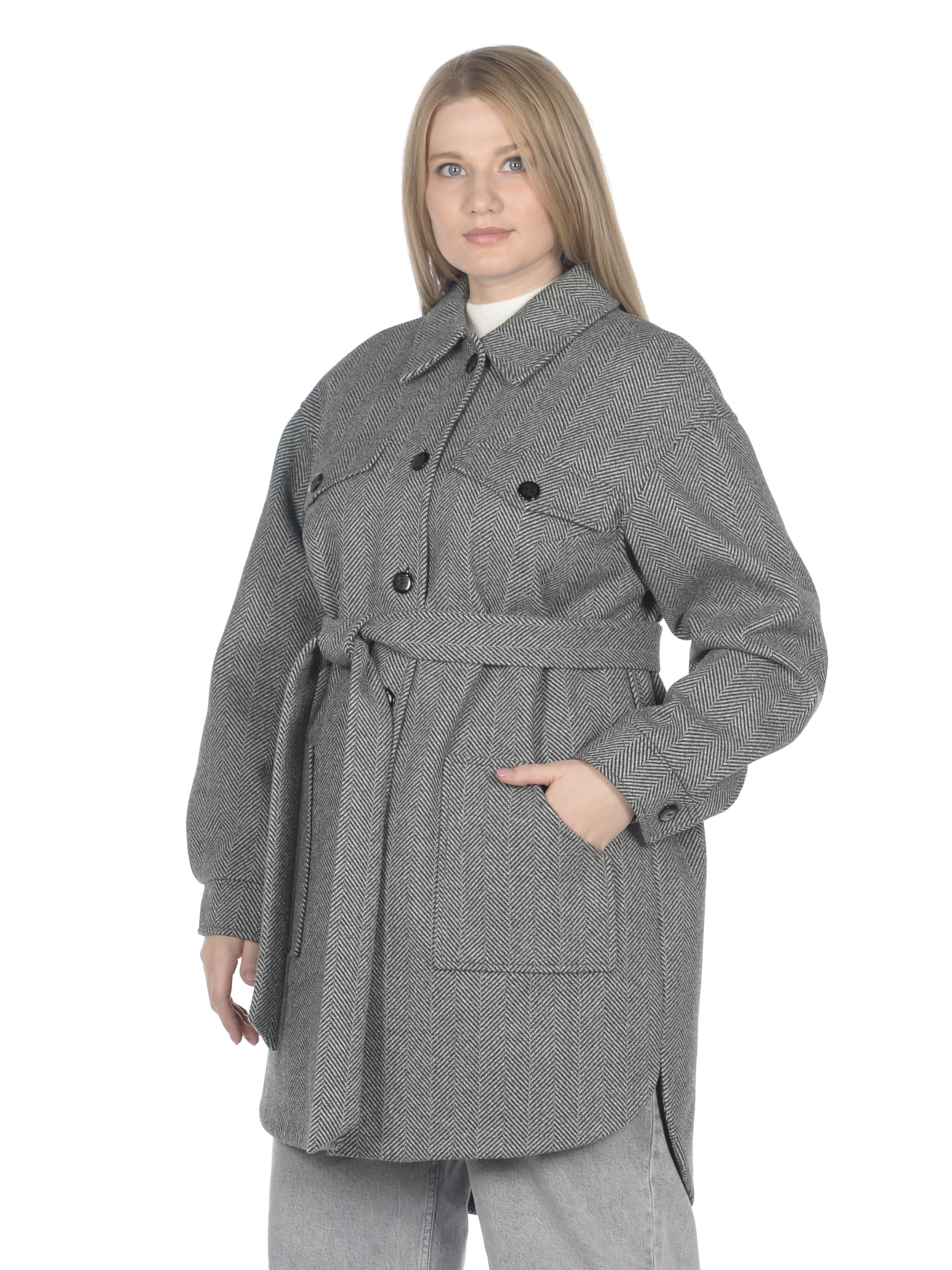 Пальто рубашка выполнена в модной, актуальной ткани. Молодежная, стильная модель до 66 размера. Подойдёт для молодых девушек, стильных и современных женщин, которые хотят выделится среди толпы, подходит для фигуры любого типа. В комплекте идёт пояс, чтобы