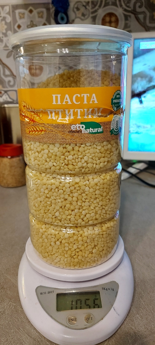 Птитим вариант макарон, изготавливаемых из твёрдых сортов пшеницы в форме рисовых зерен, этот продукт приближен к кускусу, отличие между ними только в размере гранул, птитим несколько крупнее. Принципиальное отличие от других макаронных изделий: птитим по