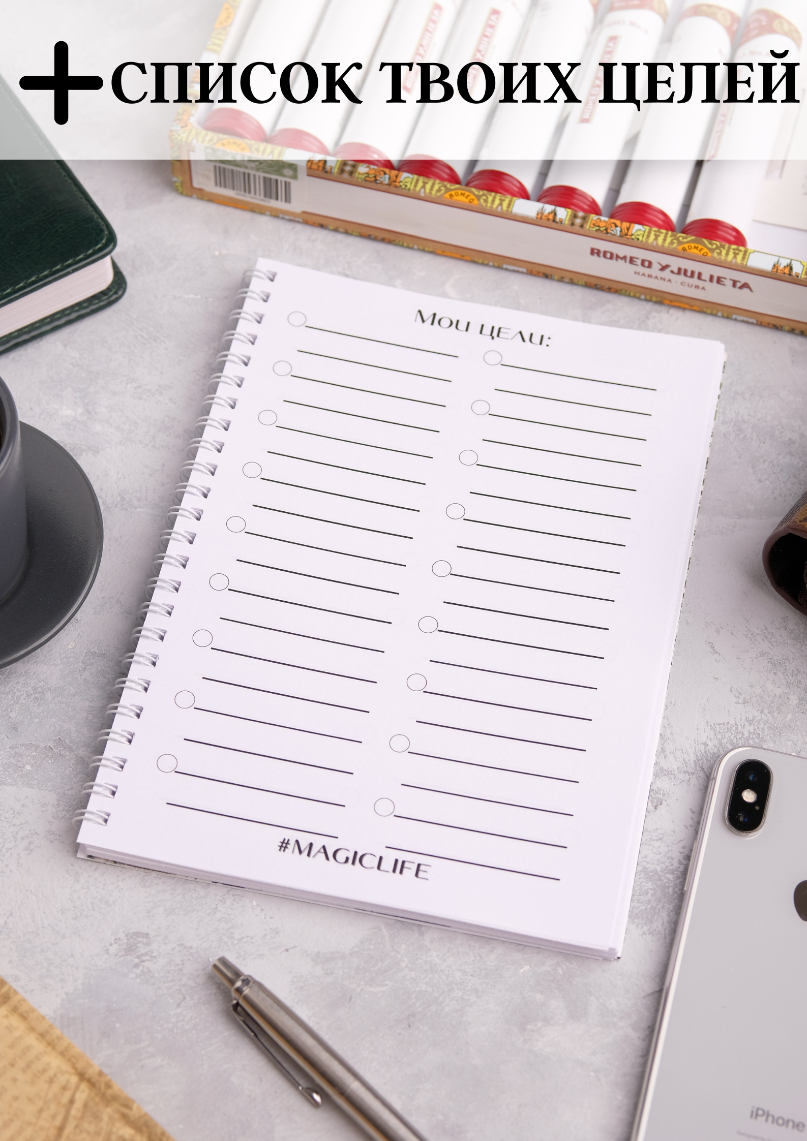 Комплектация:Планер А5, 150 страницОписание:3 в 1: планер, ежедневник и еженедельник MAFICLIFE поможет тебе фиксировать все свои планы, желания и цели в одном месте.Яркий дизайн с фразой "Все идет по плану. Я все могу" будет мотивировать на новые победы.О