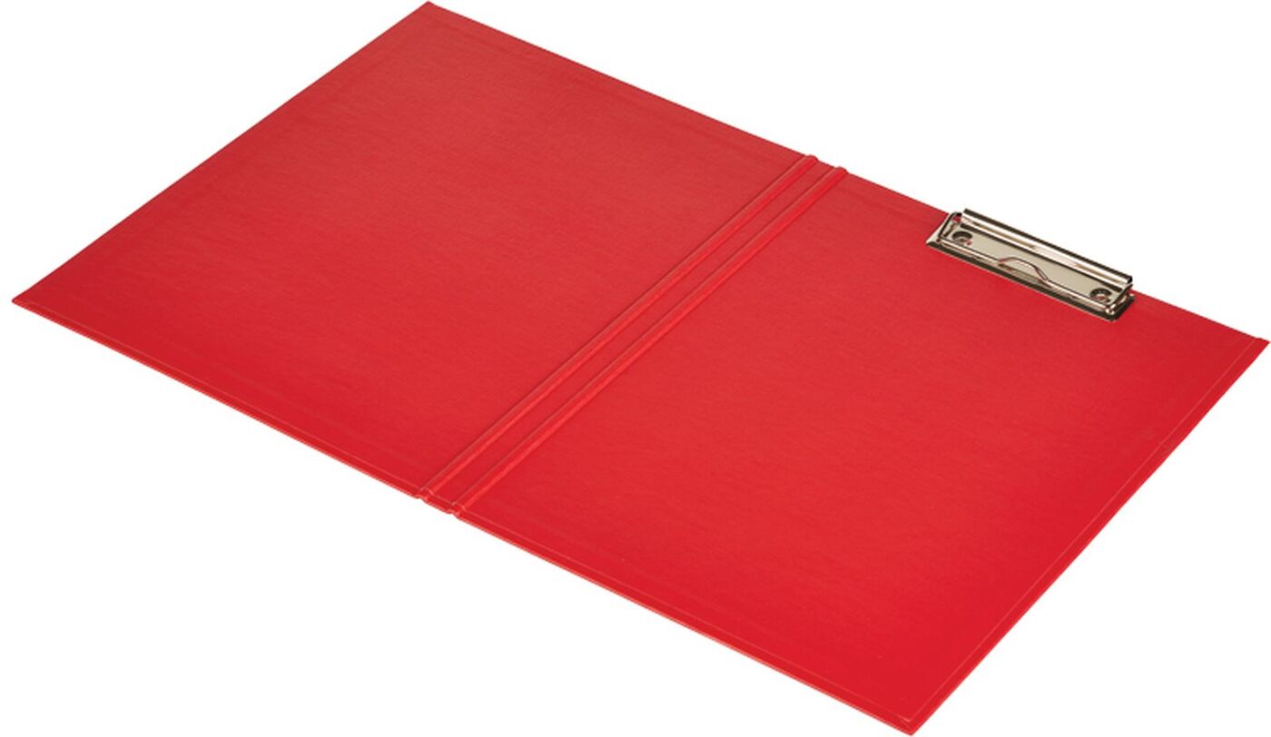 Папкапланшет формата А4 (315?225 мм) изготовлена из плотного картона,сверху покрыт ПВХ красного цвета. Позволяет комфортно работать с документами на весу. Металлический прижим надежно удерживает листы и файлы. Вместимость до 100 листов. С крышкой.