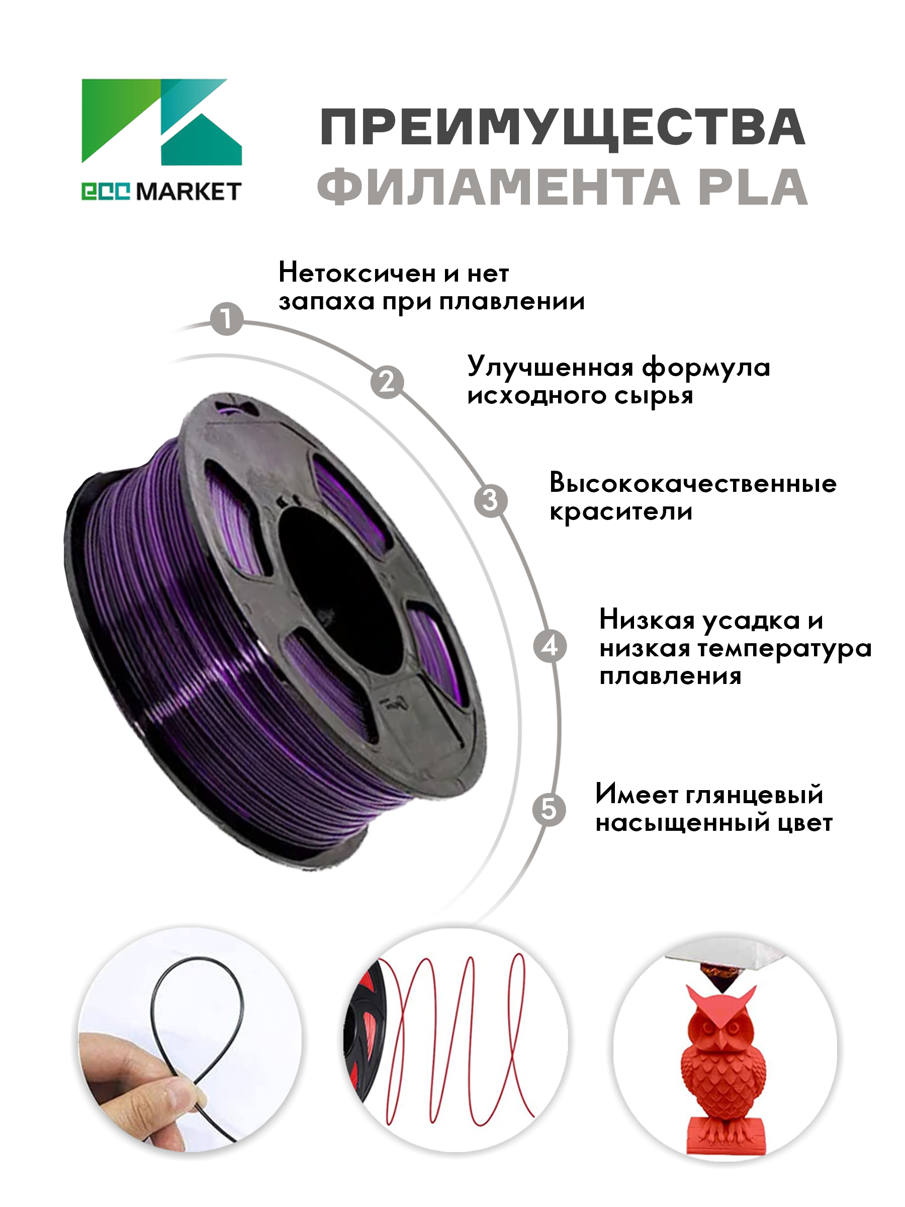 PLA - это биоразлагаемый филамент, который подходит для 3д печати почти на всех 3D принтерах FDM . Прутки из такого материала занимают более 75% рынка. Использование качественных красителей (суперконцетратов), которые базированы на однородных с материалом