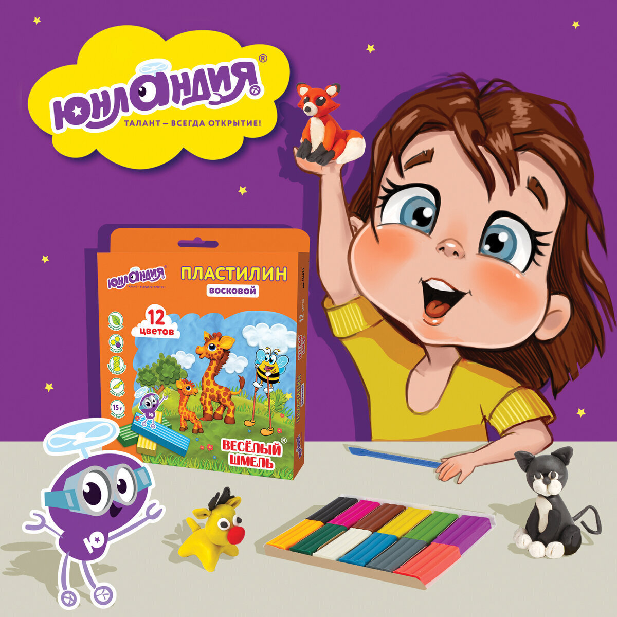 Восковой пластилин ЮНЛАНДИЯ предназначен для лепки и моделирования, способствует развитию мелкой моторики рук и пространственного мышления. Может использоваться детьми с трехлетнего возраста. Мастер-класс по лепке из пластилина размещен на обороте.Восково