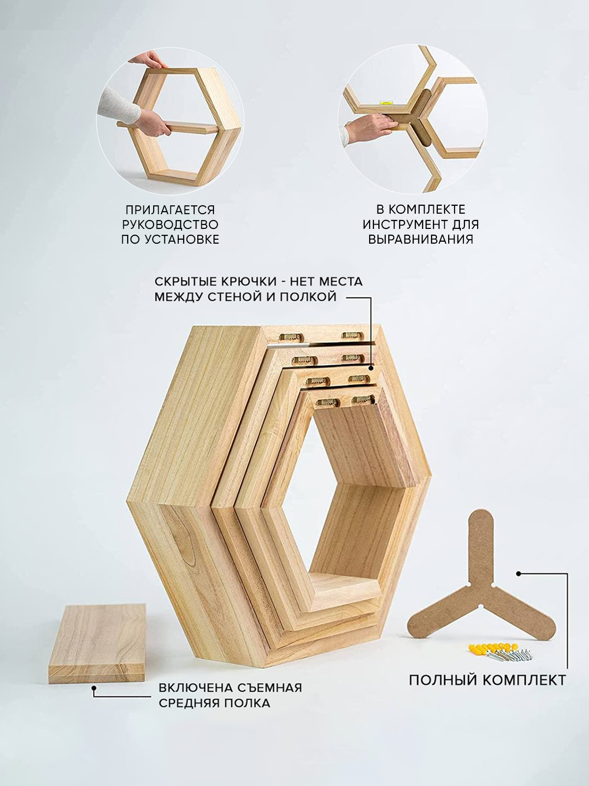 Дополнительно:Полки из натурального дерева настенные в виде сот