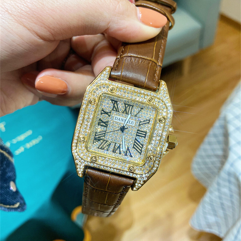 Полные бриллиантовые часы женские квадратные личные модные тенденции мужские часы с большим циферблатом
