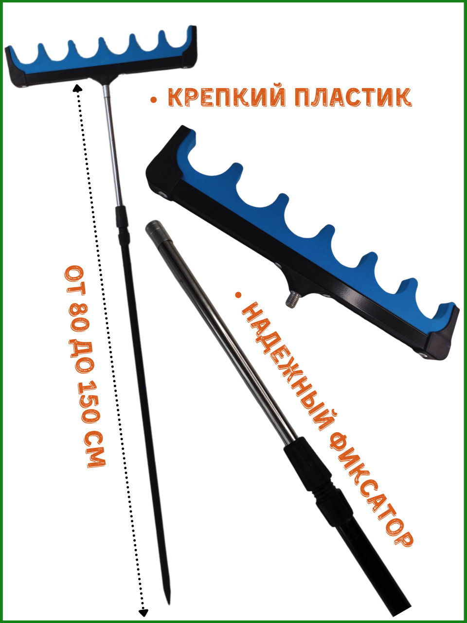 Подставка-гребёнка под удилище телескопическая на 6 секций Высота: 80-150см. Держатель удилища - U образный. Подставка выполнена из качественного материала, который очень прочный и устойчивый, поэтому служить будет долго!Подставка может быть как в синем,