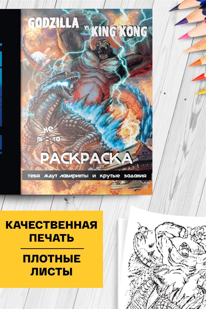 Раскраска Годзилла (Godzilla) 52 страницы. Раскраска развивашка с любимыми героями из фильма Годзилла (Godzilla). Яркая картинка, качественная линия рисунка и интересные сюжеты игр-заданий порадуют и детей и взрослых. Раскраска с Годзиллой и другими персо