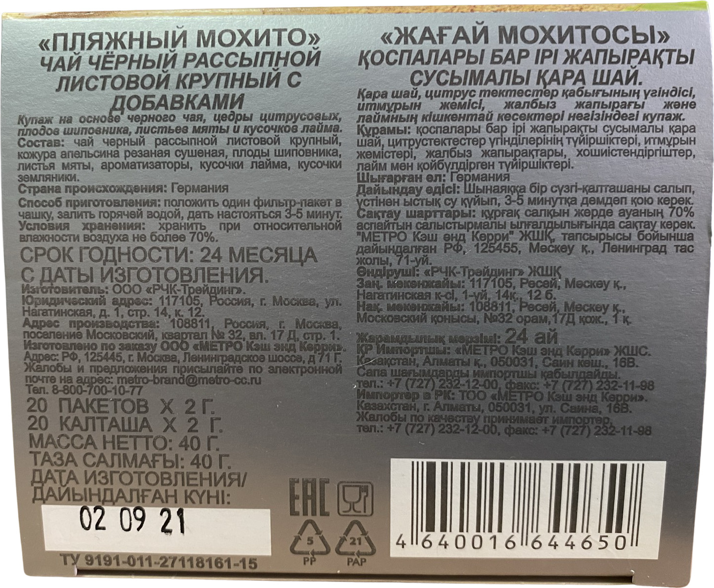 Вкус.Лайм, Шиповник, Мята, Апельсин, Земляника, Мохито