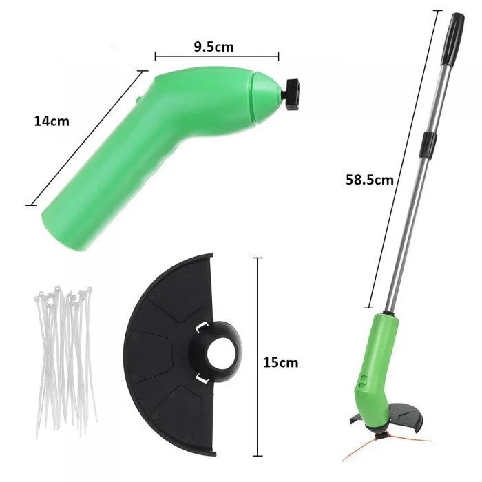 **Портативный триммер** для травы является мощным и может срезать лишнюю траву во дворе, обрезать сорняки или лужайки. Простой в использовании, может использоваться с любым стандартным размером стяжек. Легкий удлинитель для легкой обрезки. Защитный кожух