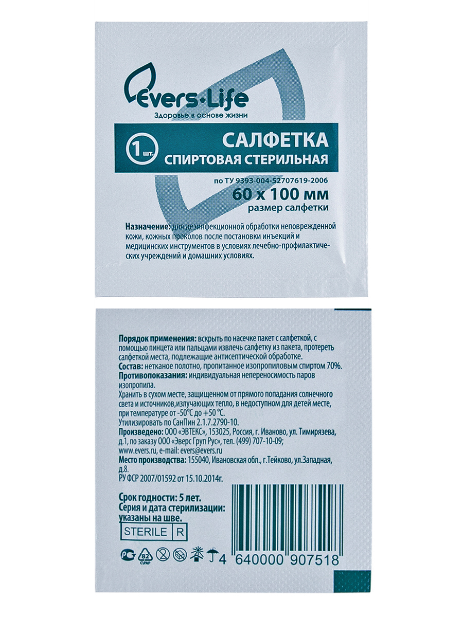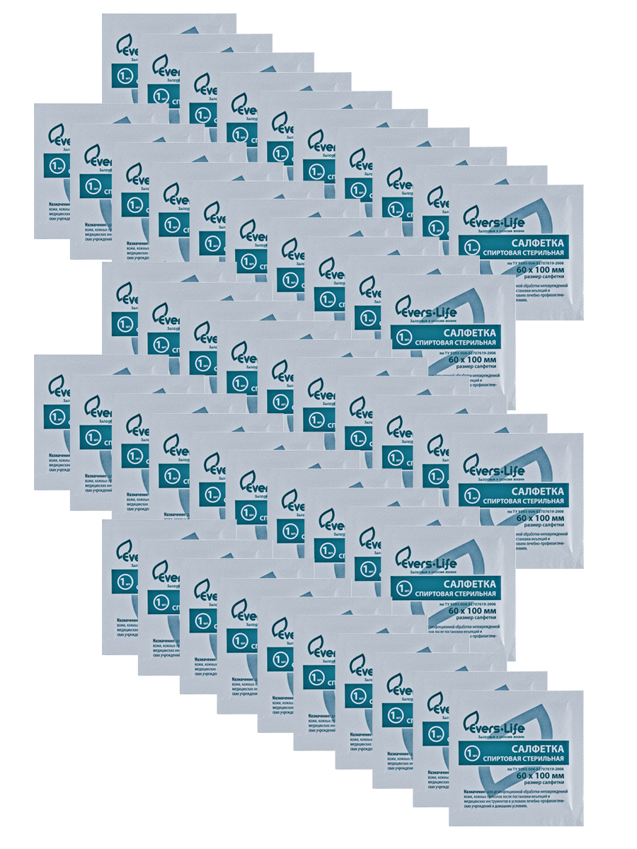 Салфетки EVERS Life спиртовые антисептические стерильные 60х100 мм, 50 шт