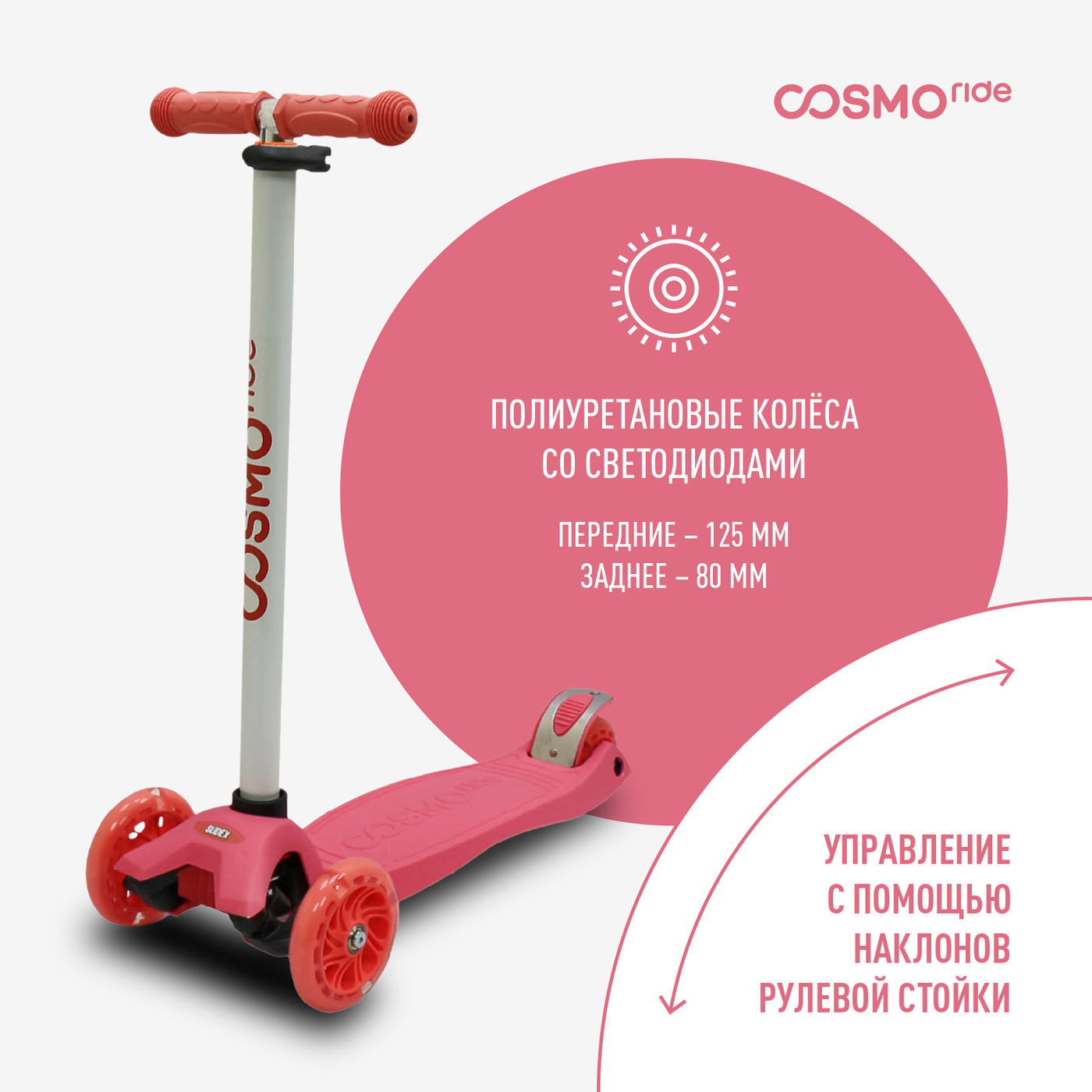 Особенности самокатаРегулируемый руль, Светящиеся колеса
