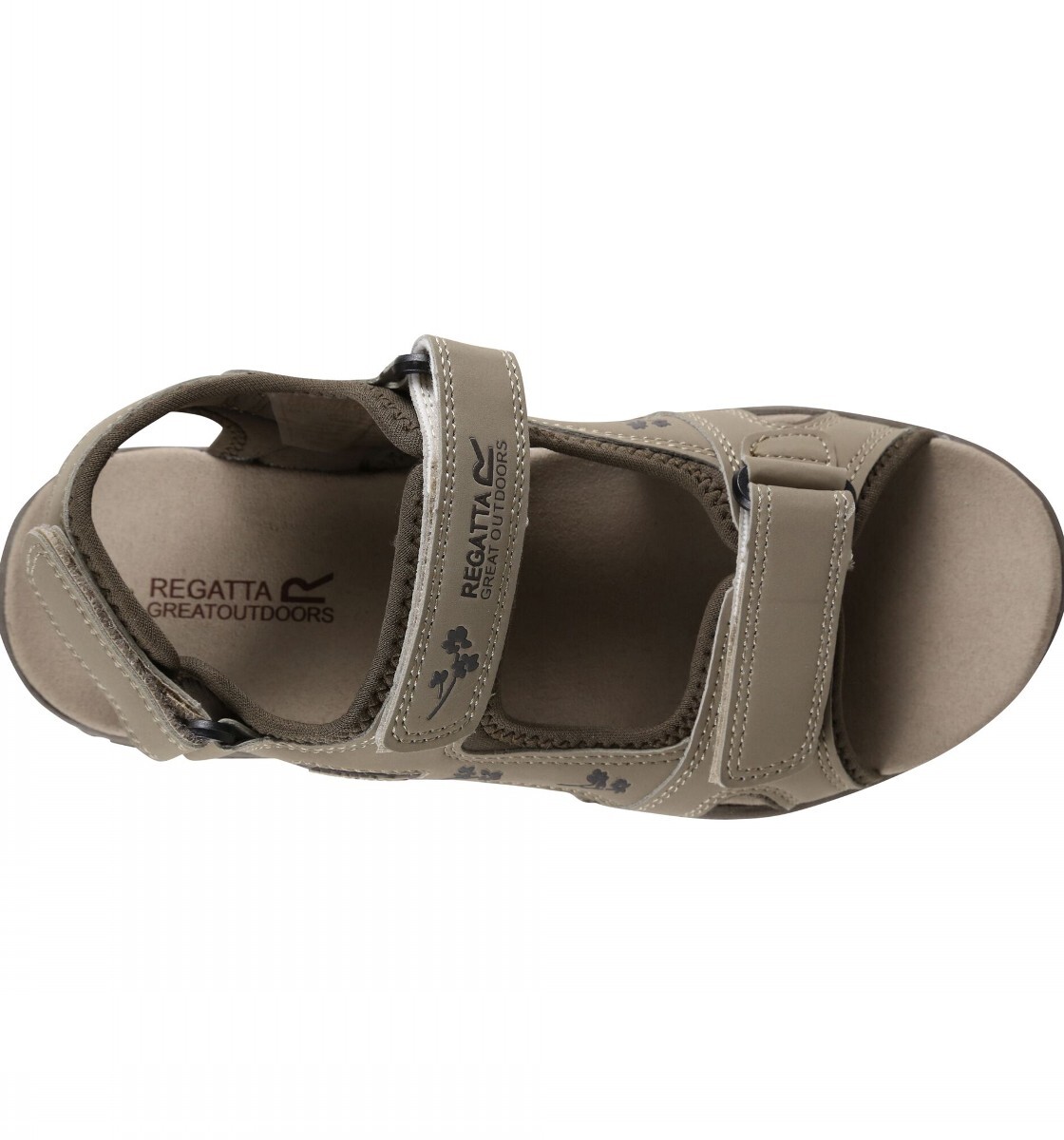 Женские сандалии из искуственной кожи. Искусственно состаренный верх, подкладка из спандекса для дополнительного комфорта и хорошей посадки.Регулируемая система липучек для правильной фиксации на ноге. Полиуретановый супинатор поддерживает свод стопы. Лит