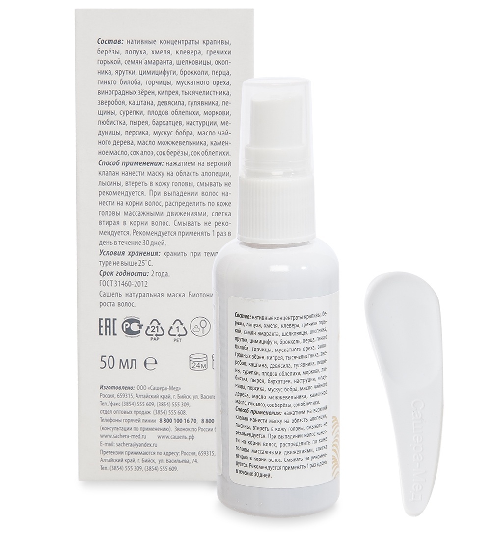 Способ примененияНажатием на верхний клапан нанести маску на область алопеции, лысины, втереть в кожу головы, смывать не рекомендуется. При выпадении волос нанести на корни волос, распределить по коже головы массажными движениями, слегка втирая в корни волос. Смывать не р