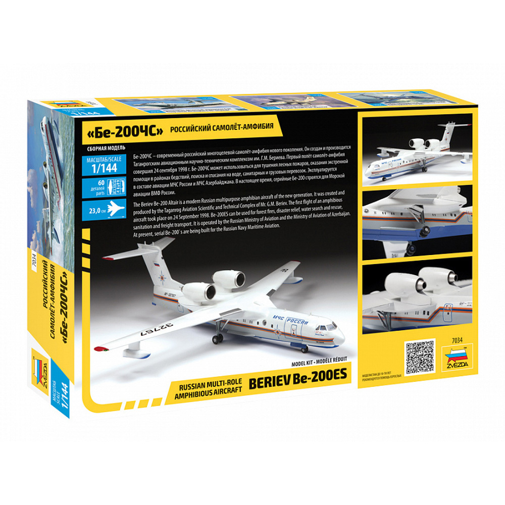 Сборная модель - Бе-200ЧС - современный российский многоцелевой самолет-амфибия нового поколения. Он создан и производится Таганрогским авиационным научно-техническим комплексом им. Г.М. Бериева. Первый полет самолет-амфибия совершил 24 сентября 1998 г. Б