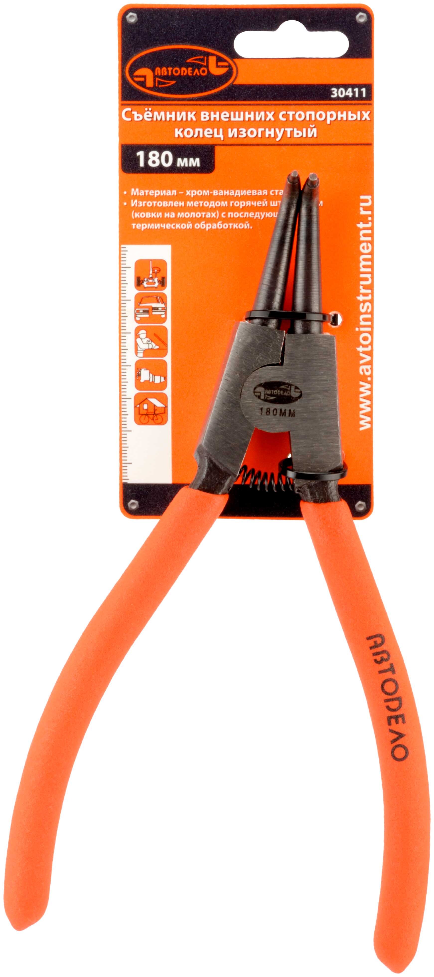 Щипцы для разжима стопорных колец "АвтоДело" длиной 150 мм. Предназначены для быстрого снятия и установки наружных колец на место; более тонкие рабочие захваты и наличие возвратной пружины упрощает работу. Материал изготовления - прочная и долговечная хро