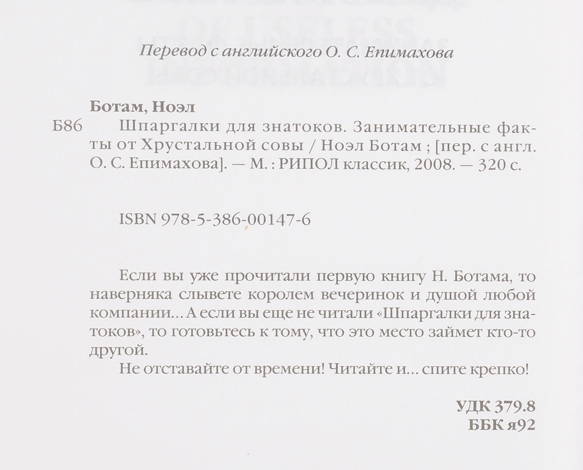 Название этого сочинения на английском-"Книга бесполезной информации"- не более чем кокетство автора. Бесполезной информации не бывает. Во всяком случае, если она верна.Издательство: Рипол Классик
