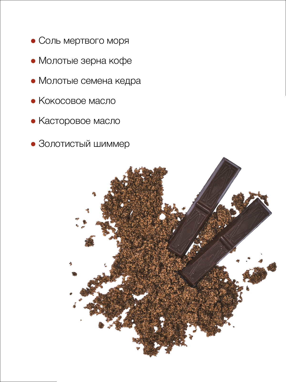 Состав:Sea Salt, Coffea (Coffee) Seed Powder, Theobroma Cacao (Cocoa) Seed Butter, Palm Oil, Cedrus Seed, Cocos Nucifera (Coconut) Oil, Parfum, Rizinus Communis (Castor) Seed Oil, Mica, Tocopheryl Acetate, Benzyl Salicylate, CI 77891, CI 77861, CI 77491