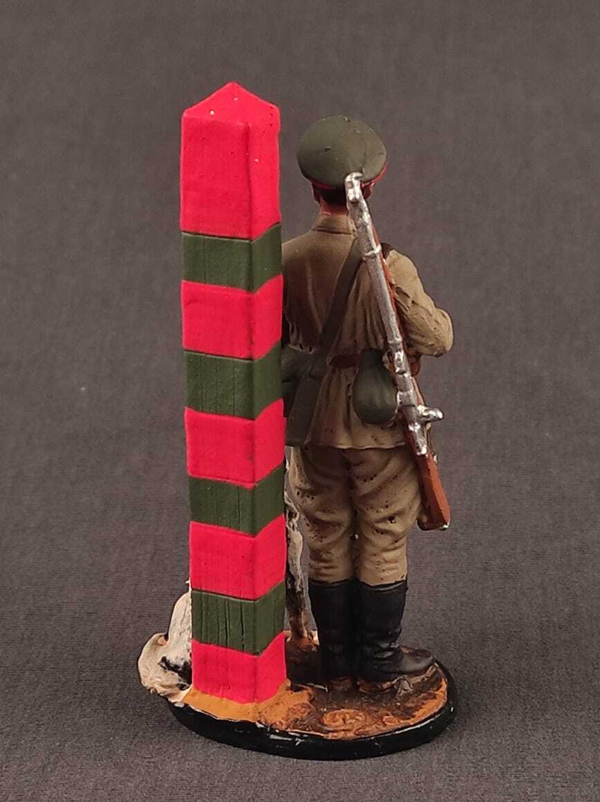 Комплектация:1 фигуркаОписание:Младший сержант Пограничных войск НКВД с собакой, 1941 г. СССР. Солдатик изготовлен из оловянного сплава масштаб 1:32 (54мм). Фигурка окрашена в студии BestToySoldiers (Санкт-Петербург)