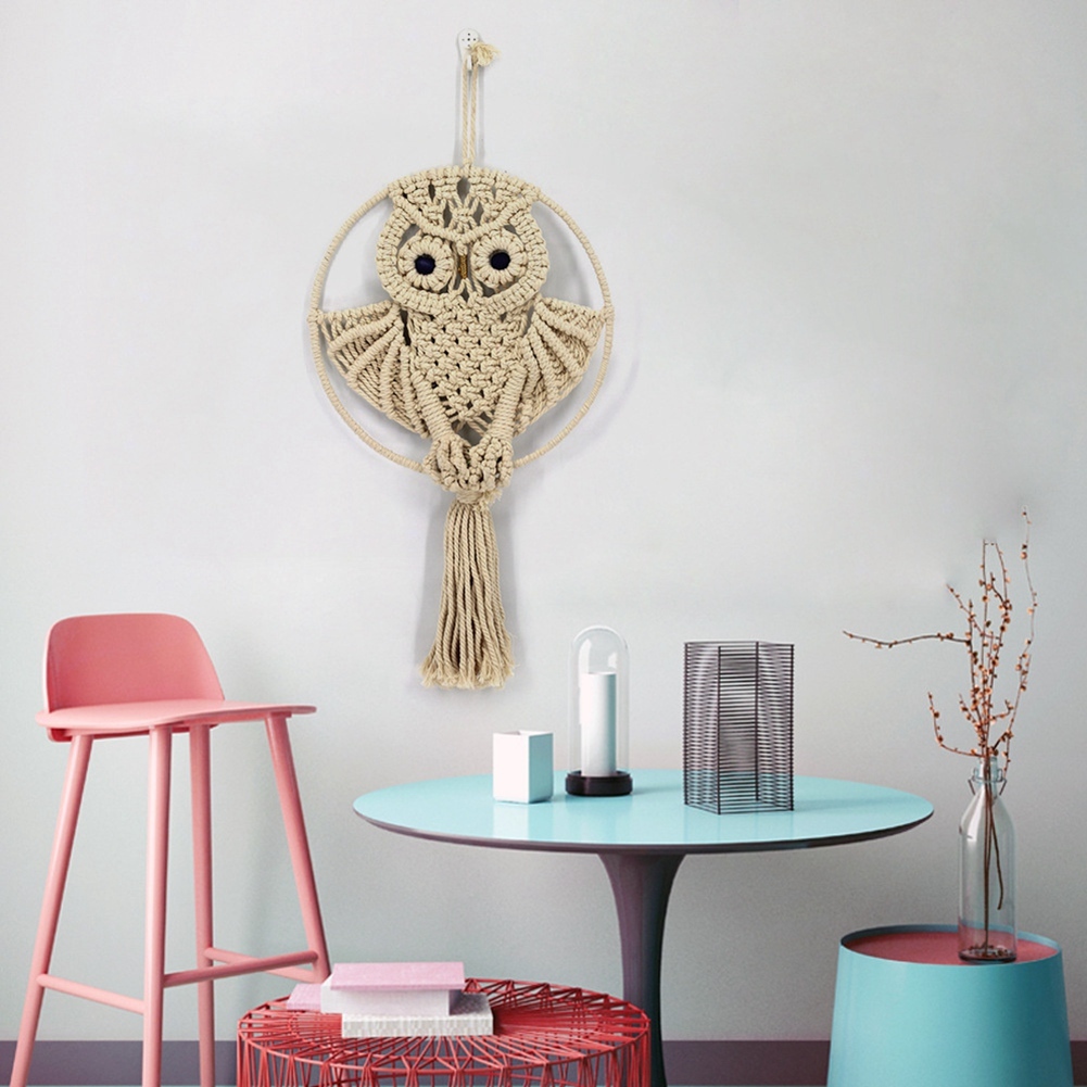 Сова висит гобелен эстетический декор комнаты аксессуары макраме ручной работы скандинавский стиль богемные украшения для дома-A