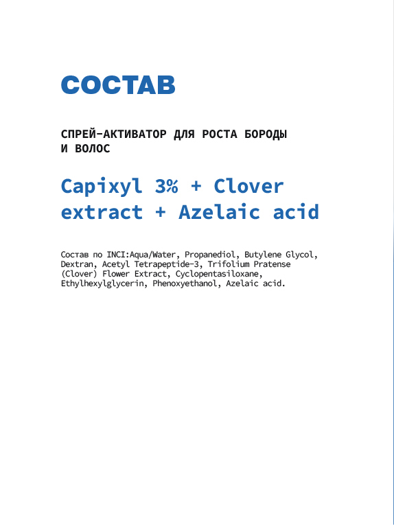 Состав средства:Aqua/Water, Propanediol, Butylene Glycol, Dextran, Acetyl Tetrapeptide-3, Trifolium Pratense (Clover) Flower Extract, Cyclopentasiloxane, Ethylhexylglycerin, Phenoxyethanol, Azelaic acid.Комплектация:флакон 50мл с распылителемОписание:Экст