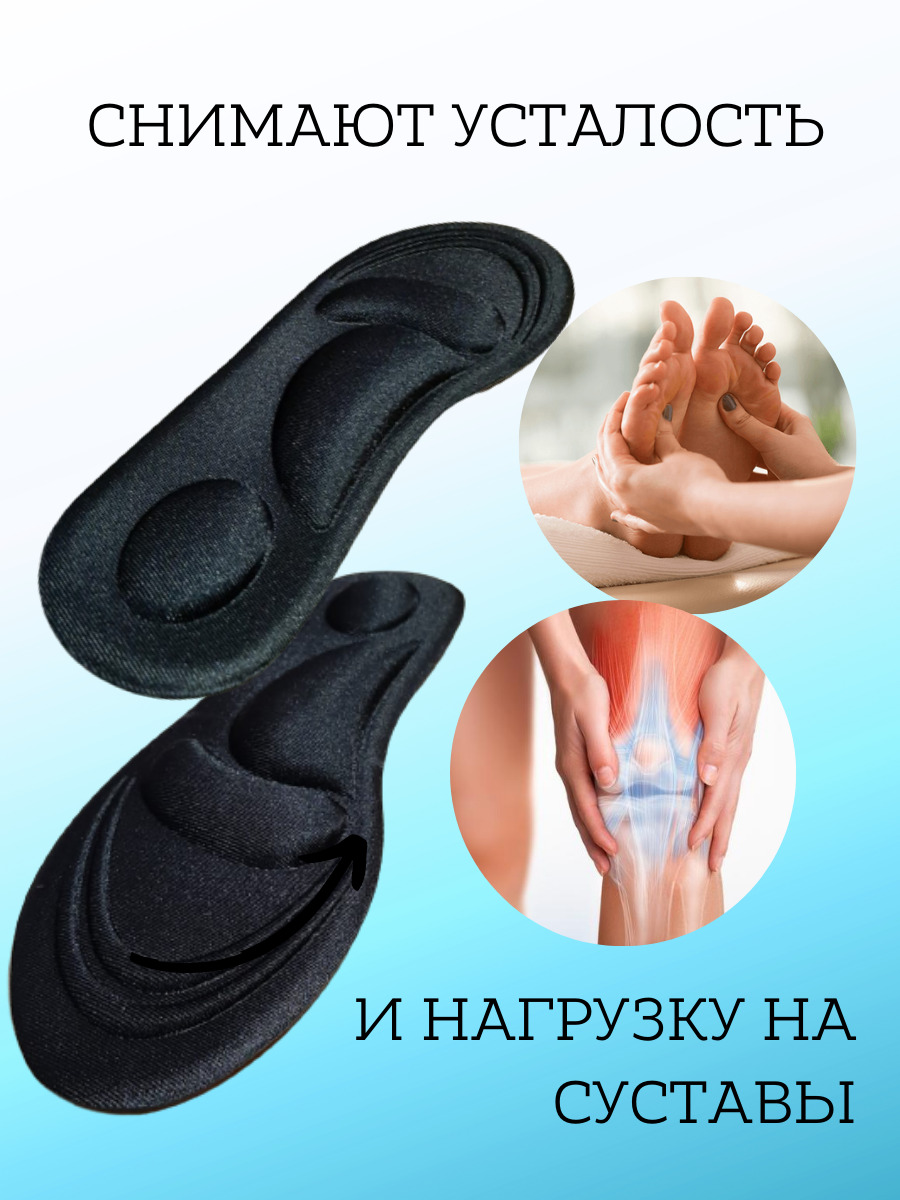 Эти стельки сделают комфортной любую обувь. Они снимают усталость и боль в ногах во время ходьбы, бега или стоячей работы. Идеальны для спорта и повседневной обуви.- Мягкие стельки имеют амортизирующие вставки. Супинаторы поддерживают стопу, снижают нагру
