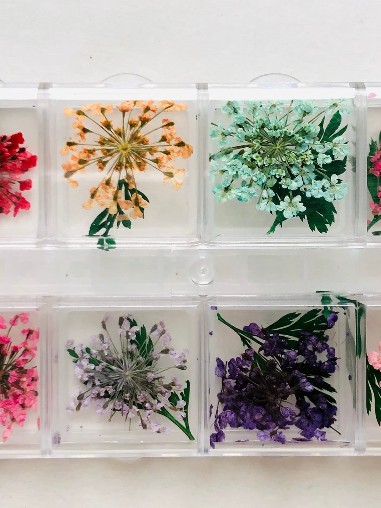 Сухоцветы - натуральные цветы, способные украсить ногти, придать им изящный образ и сделать из них неповторимое произведение искусства.Комплектация:12 сухоцветов и контейнер органайзер для дизайна